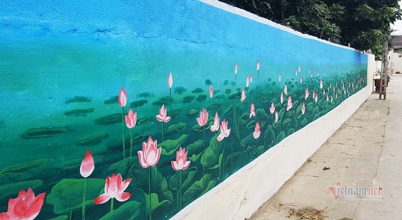 Thôn đã thuê họa sĩ vẽ hơn 200m2 trong khoảng 2 tháng. Những bức tranh cổ động về làng quê xưa và nay, an toàn giao thông, bảo vệ môi trường… và đặc biệt hơn tranh phòng chống Covid – 19 cũng được các họa sĩ tái hiện trên các bức tường làng trong thôn.