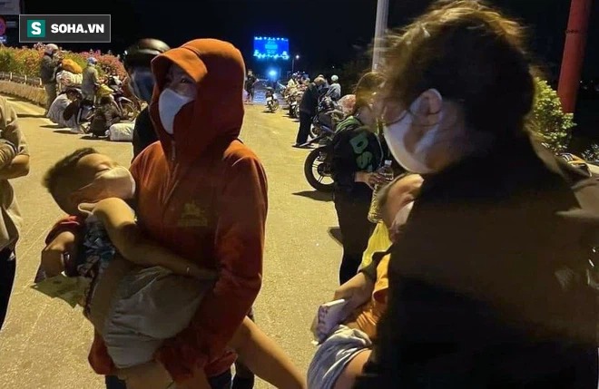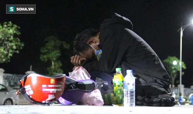 Sau chặng đường dài cả nghìn km về quê "trốn" dịch, nhiều người dân ngồi gục bên vỉa hè hay nằm trên xe máy vì quá mệt mỏi.