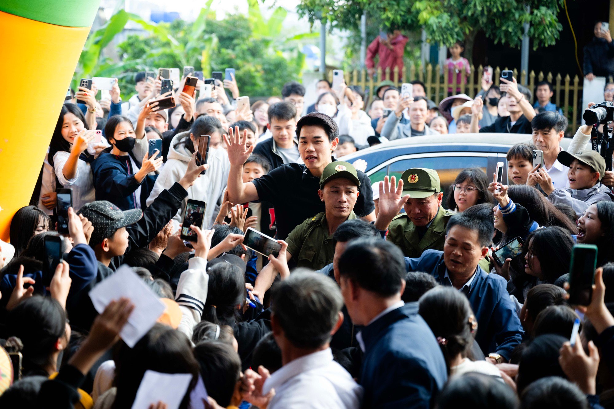 Chiều ngày 28/1, không khí tại xóm Hưng Yên Bắc 2 trở nên nóng hơn bao giờ hết khi tiền đạo Đình Bắc chính thức lộ diện sau hành trình thi đấu quốc tế thành công rực rỡ. Ngay từ khi xe của nam cầu thủ xuất hiện, hàng trăm người hâm mộ đã vây kín, khiến lực lượng chức năng phải rất vất vả mới có thể hỗ trợ anh di chuyển vào khu vực sân khấu chính.