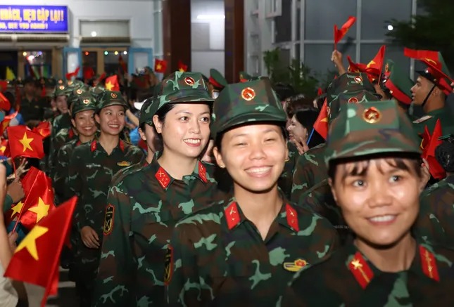 Các thiếu nữ thuộc khối Nữ du kích miền Nam rạng rỡ lên đường sẵn sàng tham gia nhiệm vụ diễu binh trong Lễ kỷ niệm 80 năm Cách mạng tháng Tám thành công và Quốc khánh nước Cộng hòa xã hội chủ nghĩa Việt Nam.