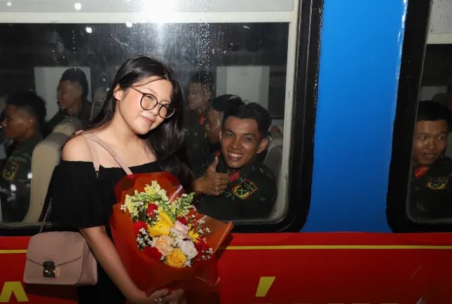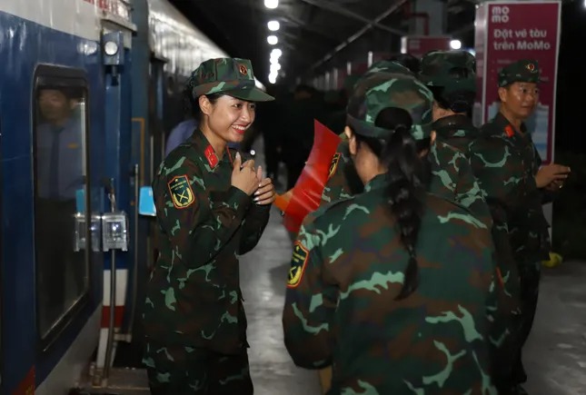 Các khối chiến sĩ lần lượt lên các toa tàu để di chuyển đi Hà Nội. Các bạn trẻ ánh lên niềm hân hoan, phấn khởi khi được góp mặt trong đội hình thực hiện các nhiệm vụ ý nghĩa trong một sự kiện mang tầm vóc lớn lao của đất nước ngay tại Thủ đô.