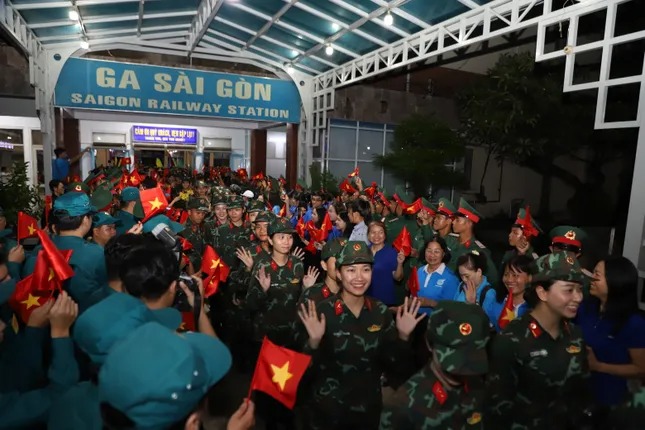 Tối 4/6, tại Ga Sài Gòn (quận 3, TPHCM), Bộ Tư lệnh Quân khu 7 tổ chức lễ tiễn các khối chiến sĩ tham gia huấn luyện diễu binh, diễu hành trong Lễ kỷ niệm 80 năm Cách mạng tháng Tám thành công (19/8/1945 – 19/8/2025) và Quốc khánh nước Cộng hòa xã hội chủ nghĩa Việt Nam (2/9/1945 – 2/9/2025).