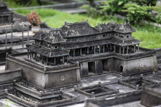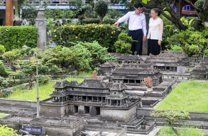 Công trình "cố đô Huế thu nhỏ" có 151 kiến trúc như Hoàng thành, Tử cấm thành, chùa Thiên Mụ, cầu Trường Tiền, lăng các vua triều Nguyễn... được tái hiện sinh động theo đúng tỷ lệ cùng độ tinh xảo như thật. |