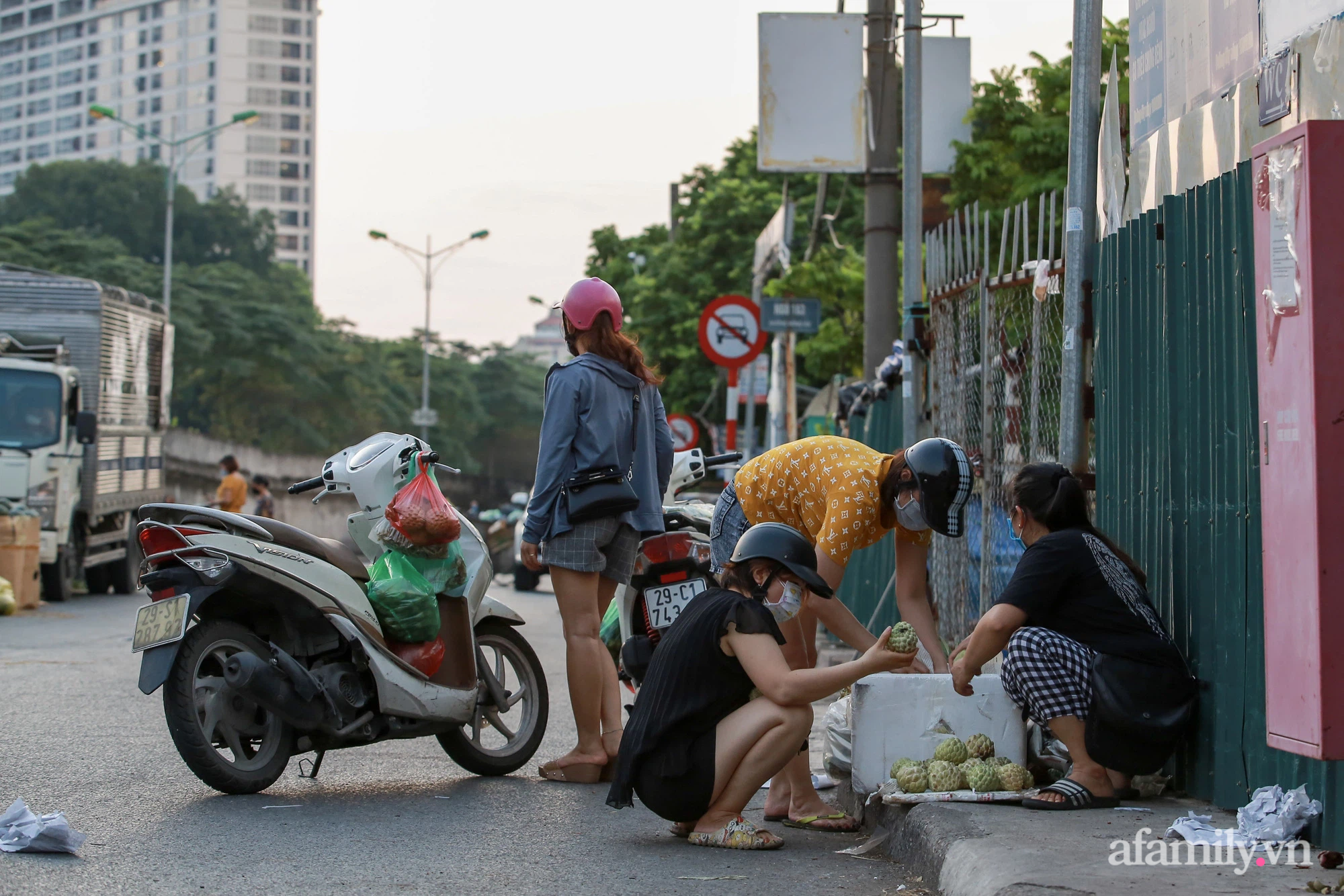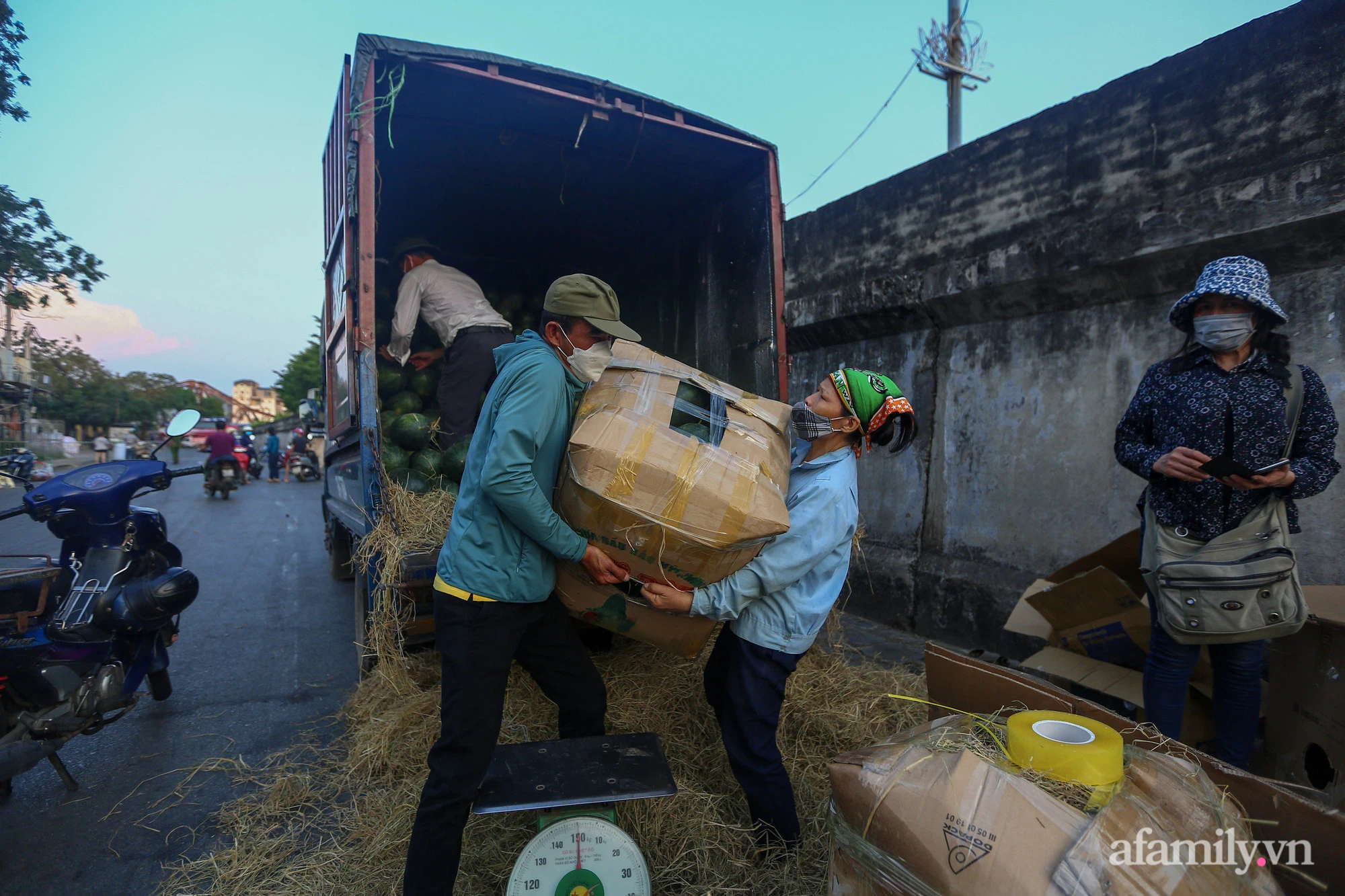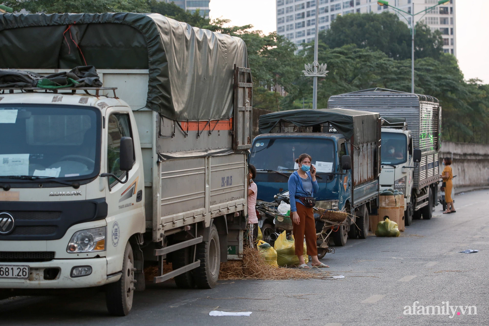 Chợ Long Biên bất ngờ bị phong tỏa vì có F0, nhiều tiểu thương hối hả tìm mọi cách tiêu thụ số hàng lỡ nhập về.
