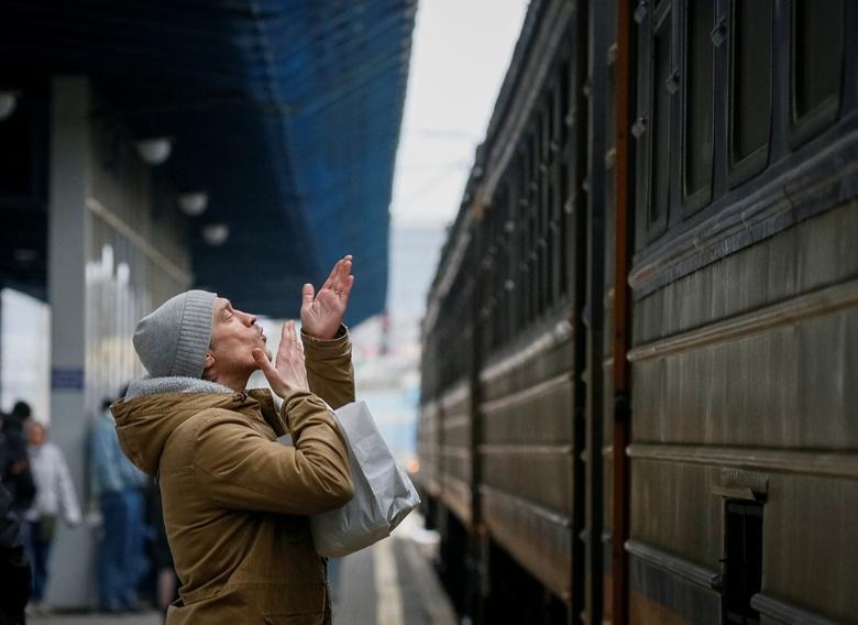Những bức ảnh tiết lộ về từng lời tạm biệt mang nhiều cung bậc cảm xúc dành cho những người lính phải ra trận, những người thân phải ly tán...đã được tổng hợp lại để phản ảnh một góc đời sống khác ở Ukraine lúc này.