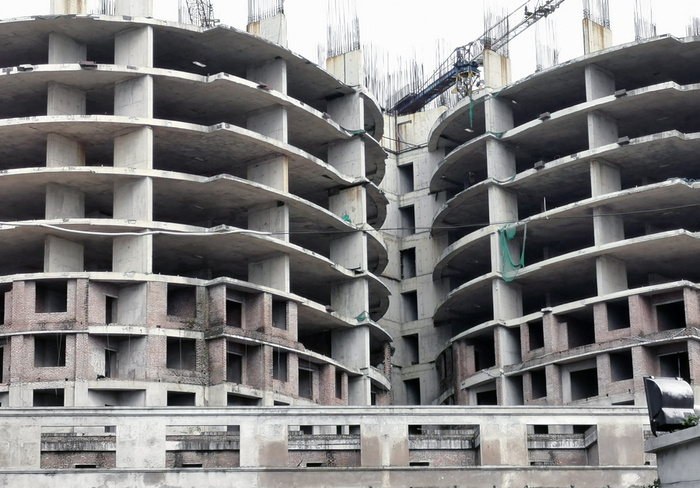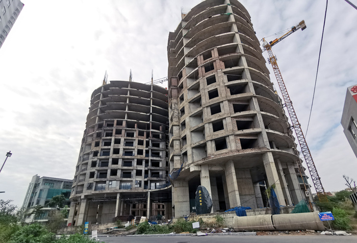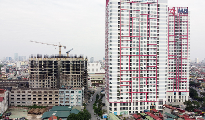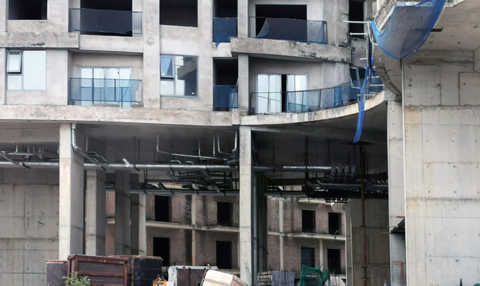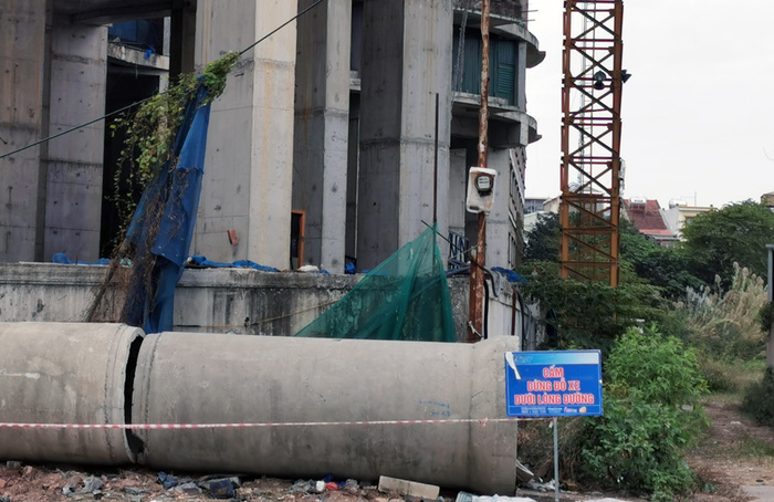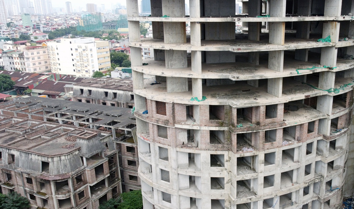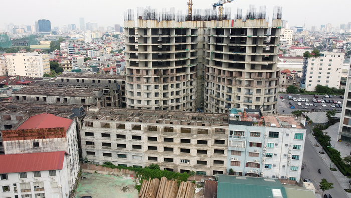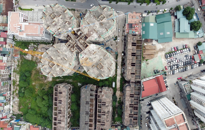 Tòa "cánh hoa" Sky View Plaza nằm trong tổ hợp Imperial Plaza 360 Giải Phóng khởi công năm 2017, xây đến tầng 14 và bỏ hoang.
