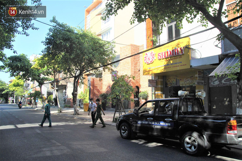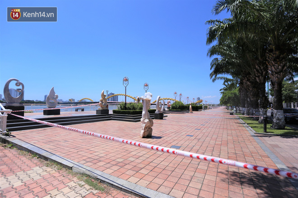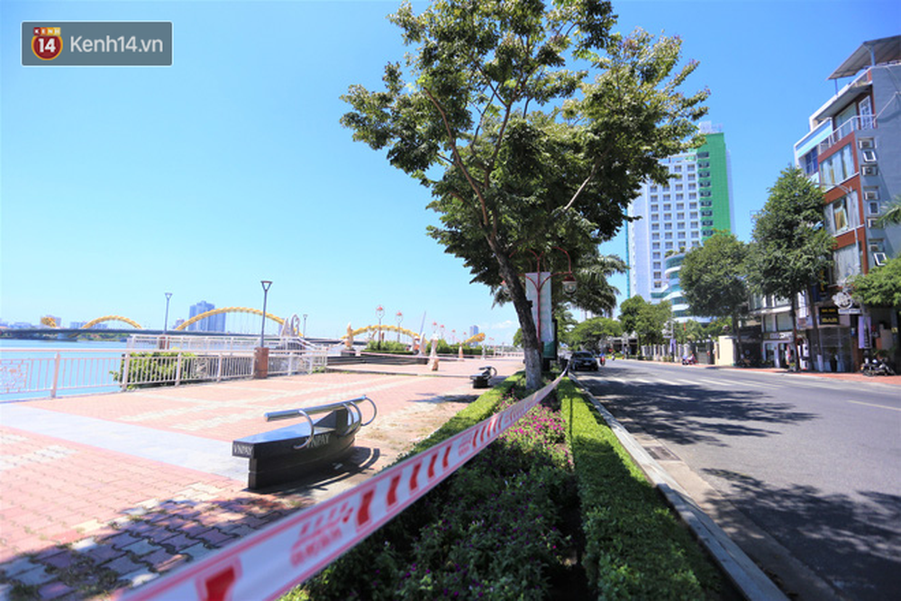 Đường phố Đà Nẵng vắng vẻ, hầu hết các cửa hàng kinh doanh đã đóng cửa. Còn bến xe, ga tàu đã dừng hoạt động. Riêng các tuyến đường xung quanh 3 bệnh viện có ca nhiễm Covid-19 đã được lập rào chắn phong tỏa chặt chẽ.