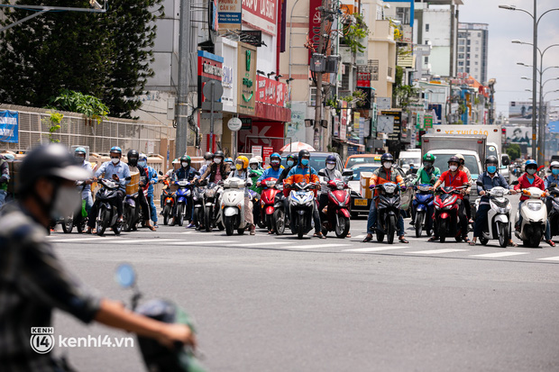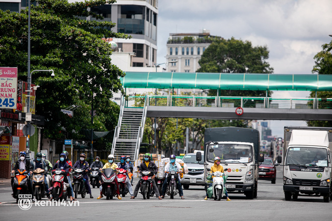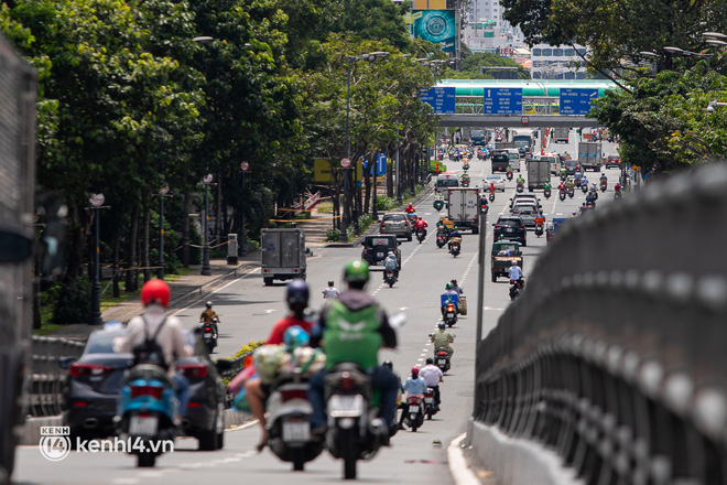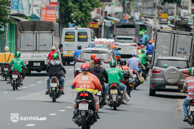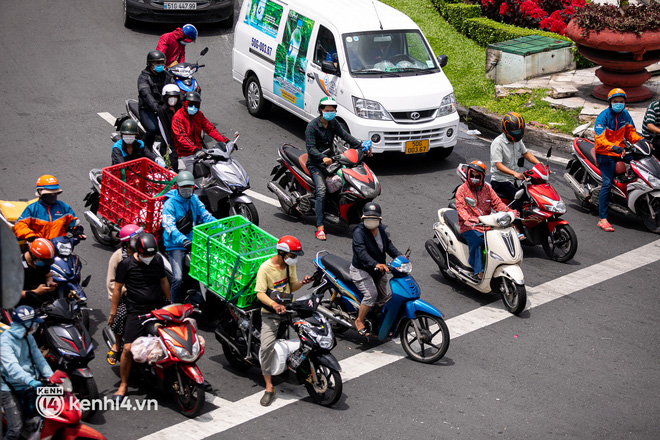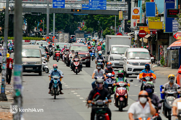 Ngày 22/8, đường phố TP.HCM có rất đông các phương tiện di chuyển do người dân ùn ùn kéo đến các siêu thị, nhà thuốc, cửa hàng tiện lợi để mua thực phẩm, thuốc men dự trữ sau thông tin TP.HCM yêu cầu "ai ở đâu ở yên đó" từ ngày 23/8.