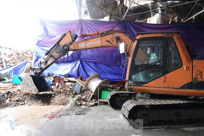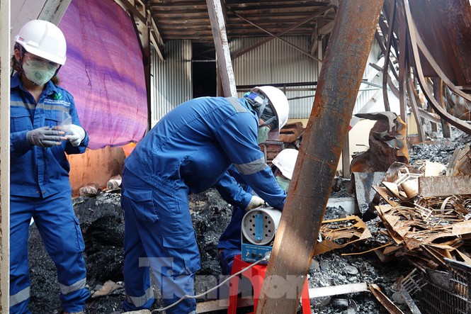 Sáng nay, các lực lượng của Bộ Tư lệnh Hoá học, Bộ Tư lệnh Thủ đô Hà Nội, Công ty cổ phần môi trường đô thị và Công nghiệp 10 (Urenco 10) đã chính thức bắt tay thu gom toàn bộ hiện trường của đám cháy, việc tiêu tẩy sẽ được tiến hành sau khi hiện trường được dọn dẹp xong.