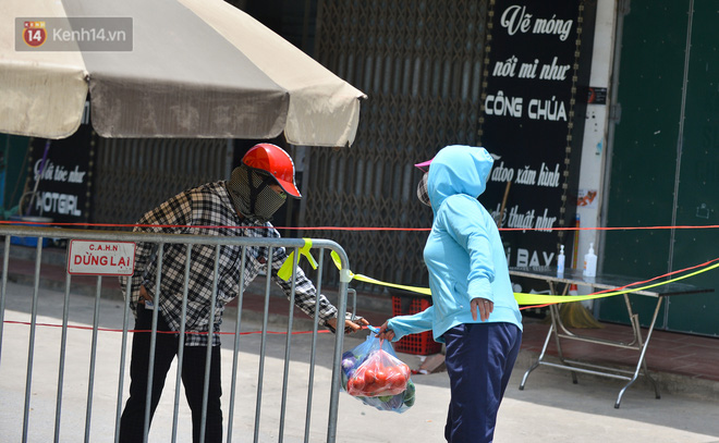 Do mọi ngã đường vào xã Hiệp Thuận (Phúc Thọ, Hà Nội) đều được lực lượng chức năng lập chốt phong toả nên người dân bên ngoài phải tiếp tế lương thực vào bên trong.