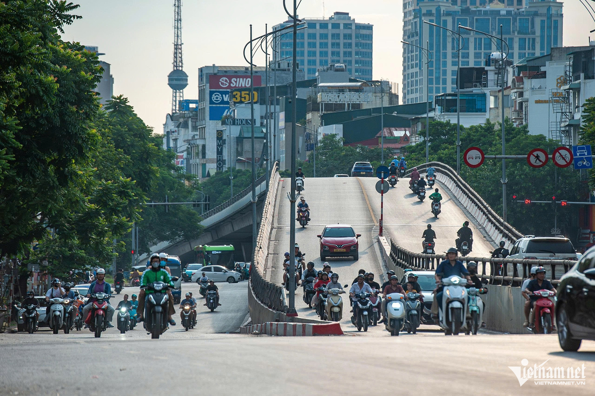 Đường Trần Quang Khải, bên trái ảnh là vùng lõi thủ đô, bên phải là sông Hồng và khu dân cư thuộc phường Bạch Đằng.