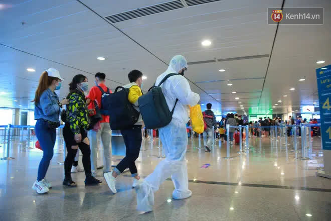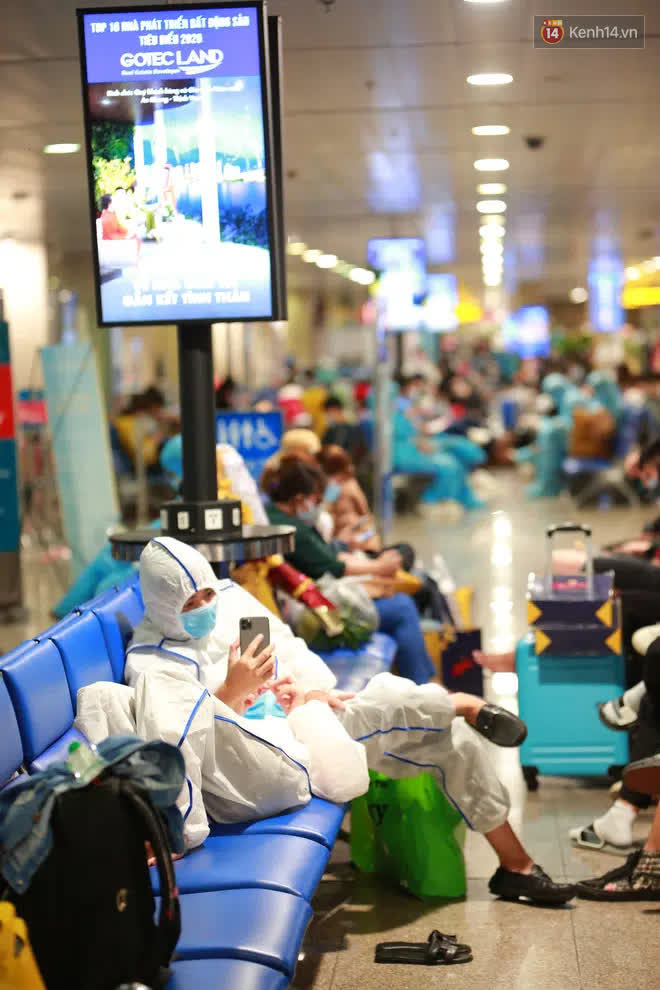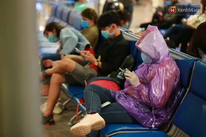 09/02/2021 13:21Tối 27 tháng Chạp ở Tân Sơn Nhất: Hành khách mặc áo mưa, đồ bảo hộ kín mít chờ về quê đón Tết