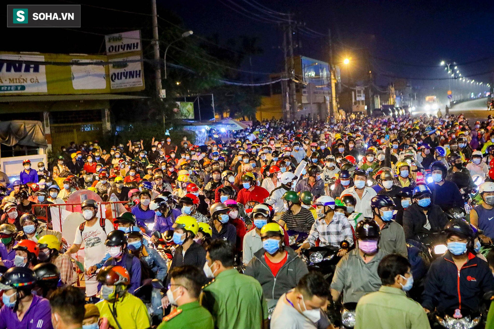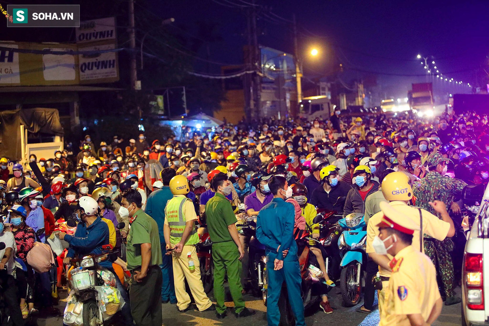 Đến hơn 3h sáng ngày 1/10, hàng nghìn người dân chở theo đồ đạc lỉnh khỉnh vẫn đợi chờ được thông chốt về quê. Lực lượng chức năng liên tục yêu cầu quay đầu xe, đến nơi tạm nghỉ trước khi thành phố có chỉ thị mới.