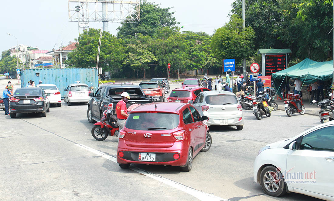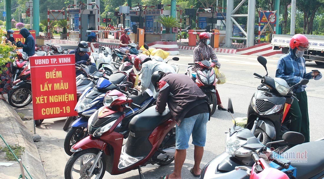 Tuy nhiên, ở 14 điểm chốt cửa ngõ ra vào TP Vinh đã ùn tắc cục bộ khi người dân ra vào phải có giấy đi đường, xét nghiệm test nhanh Covid-19 âm tính.