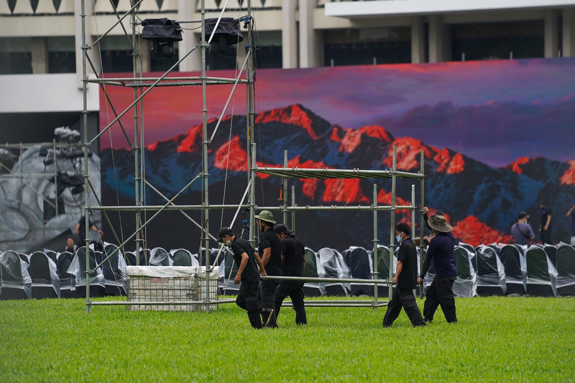 Sân khấu chính của buổi lễ được đang dần hình thành.