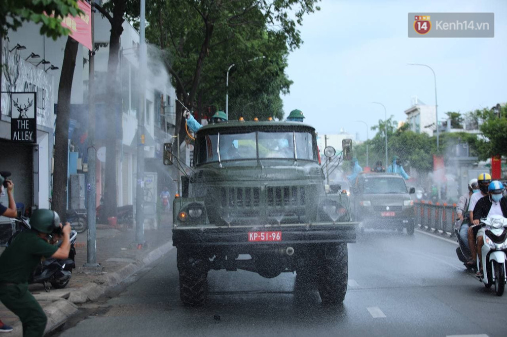Chiều 1/6, xe đặc chủng của Quân khu 7 đã tiến hành phun khử khuẩn tại một số khu vực là điểm nóng lây nhiễm Covid-19 ở quận Gò Vấp.