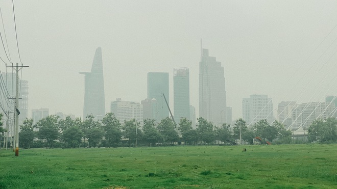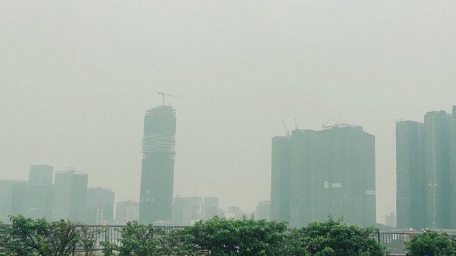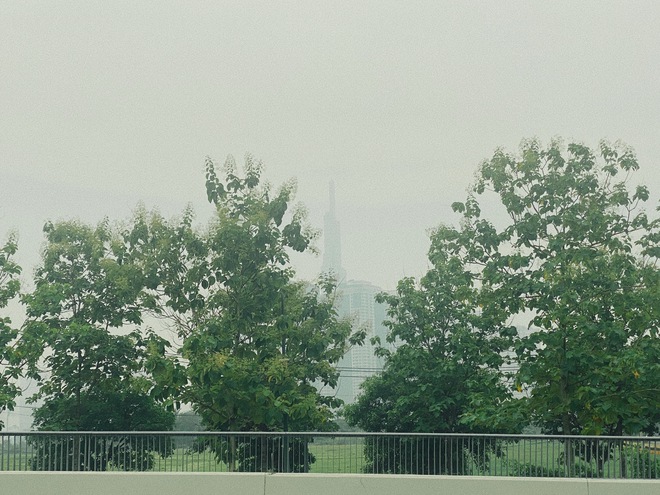 Theo ghi nhận của PV, sáng 15/6 khắp nơi TP.HCM xuất hiện lớp sương mù trắng đục. Ở khoảng cách từ 500m trở lên, lớp sương mù che khuất khiến các tòa nhà cao tầng trở nên mờ ảo.