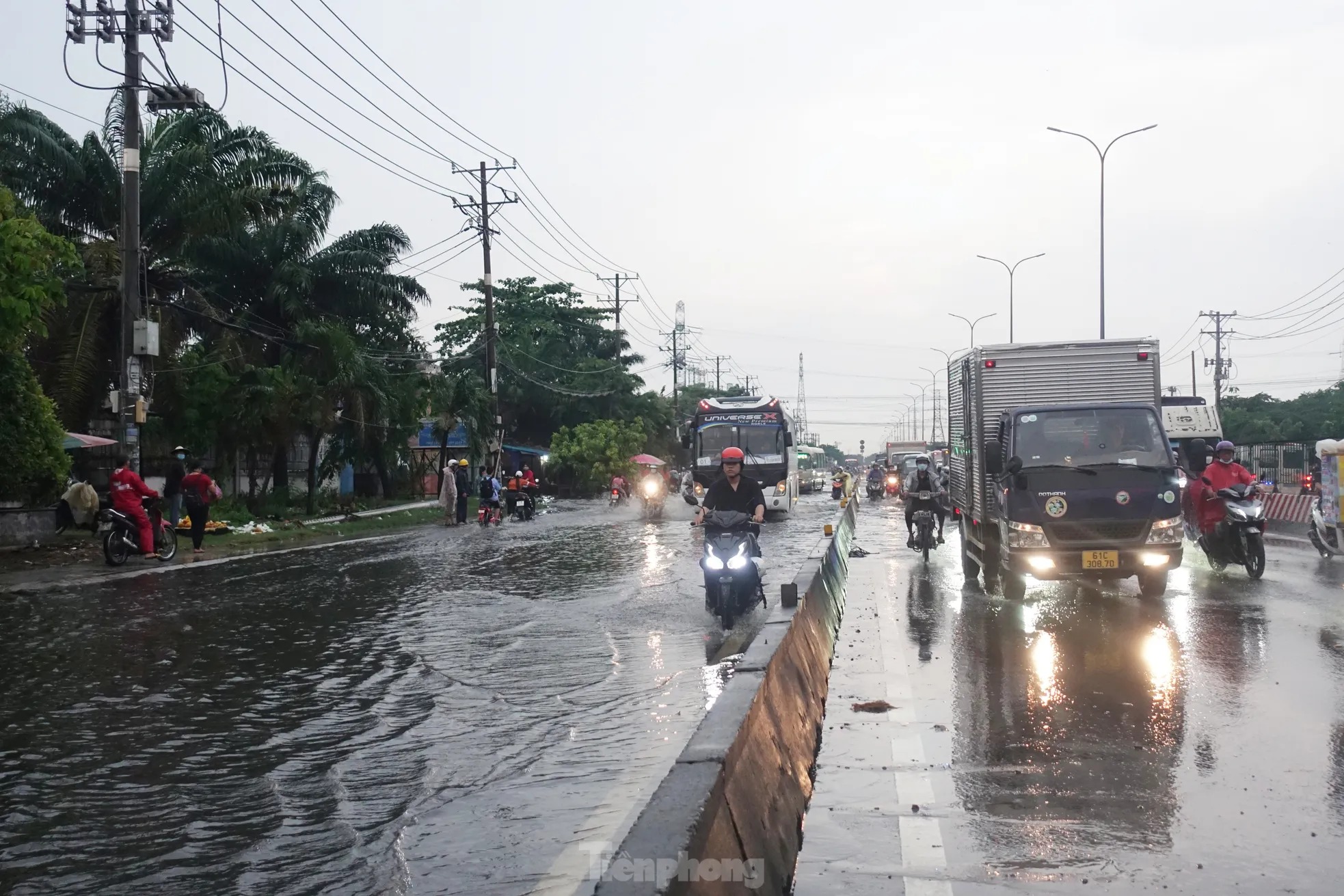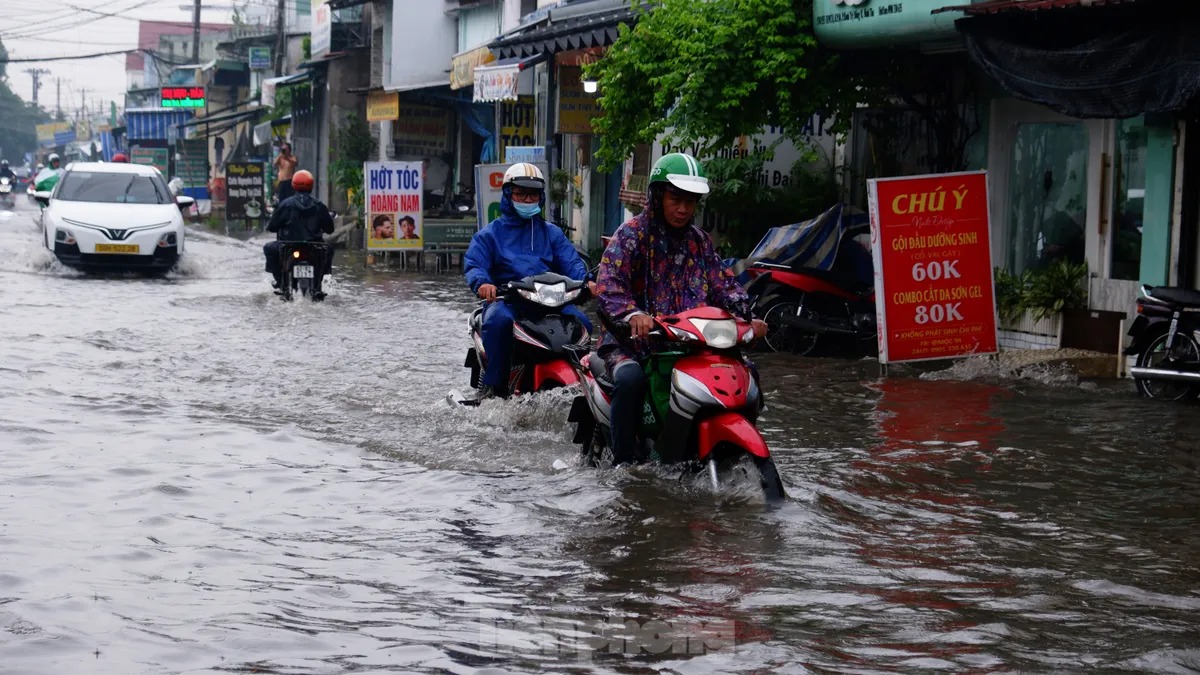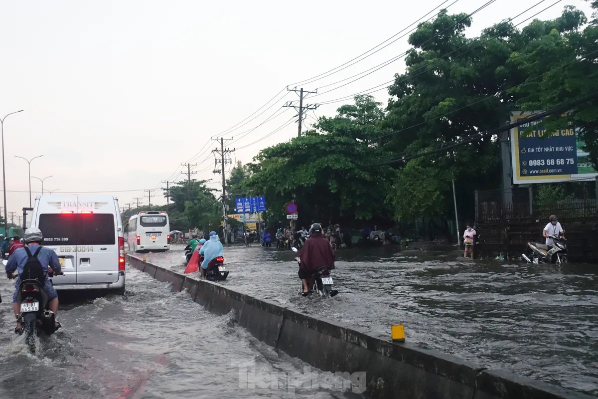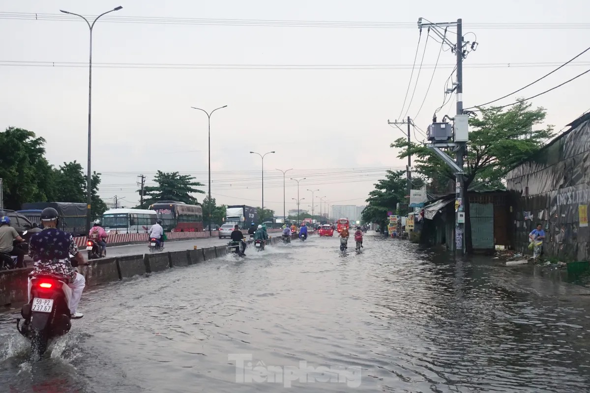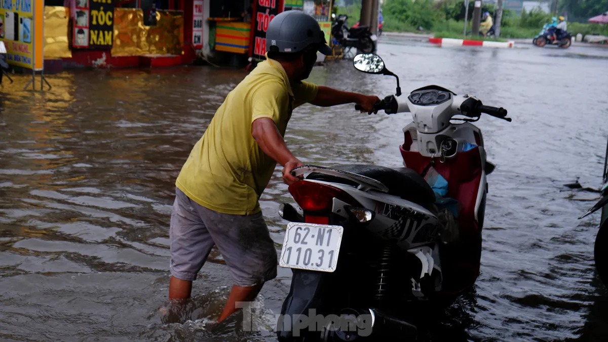 Tại quận Bình Tân, một số đoạn trên các tuyến đường như SINCO, Mã Lò, tỉnh lộ 10, quốc lộ 1,… bị ngập, có nơi ngập sâu hơn nửa bánh xe. Nhiều xe chết máy, người dân phải dắt bộ, bì bõm lội nước.