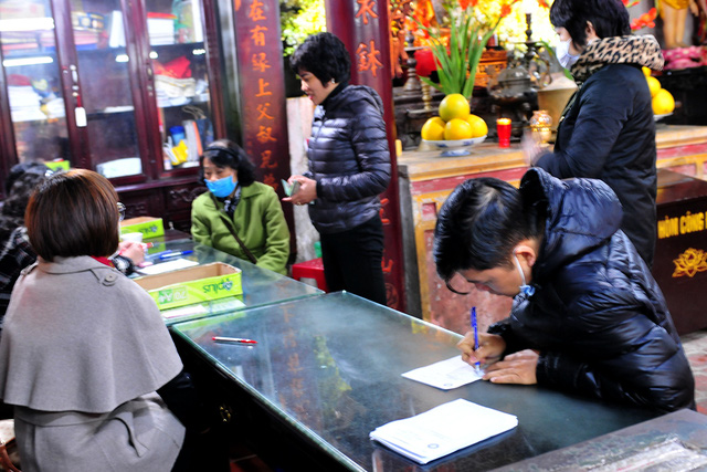Khác hẳn sự đông đúc như mọi năm, Đại lễ cầu an năm nay tại chùa Phúc Khánh (Hà Nội) rất thưa thớt người đến đăng ký.