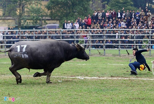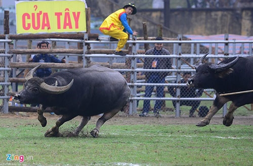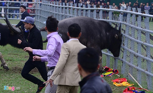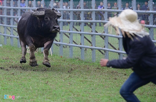 ...khiến đội bắt trâu và các ông chủ trâu một phen hú vía. Tất cả phải dạt sang một bên để tránh những cú lao nhanh. |
