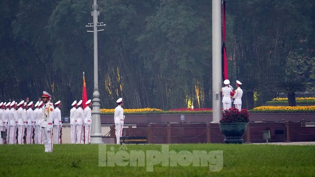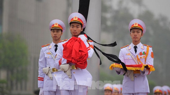 Sáng 4/4, Lễ treo cờ rủ đã diễn ra trọng thể tại Quảng trường Ba Đình (Hà Nội), đánh dấu thời điểm diễn ra Quốc tang đồng chí Khamtay Siphandone.