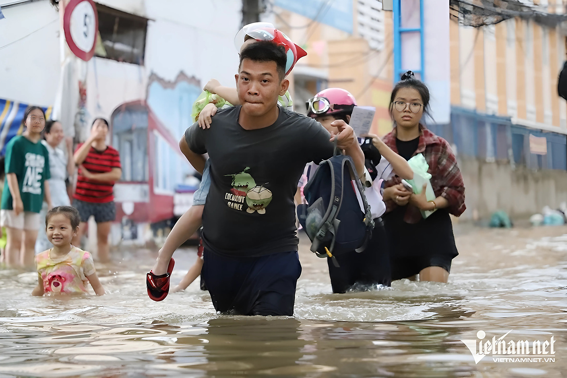 18/10/2024 05:08Triều cường vượt mức báo động 3, người dân vượt 'biển nước' đưa con về nhà