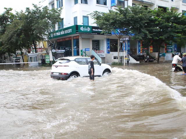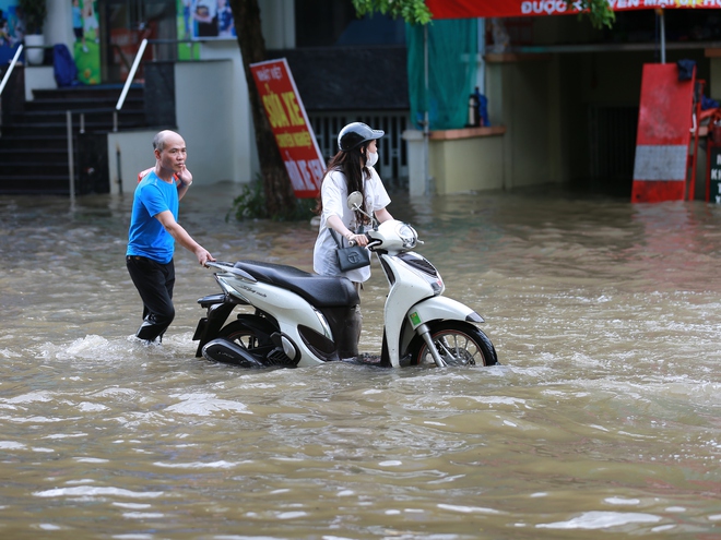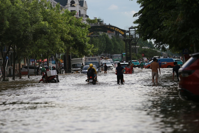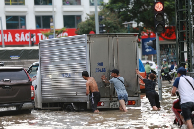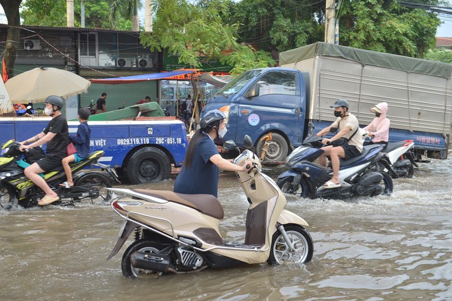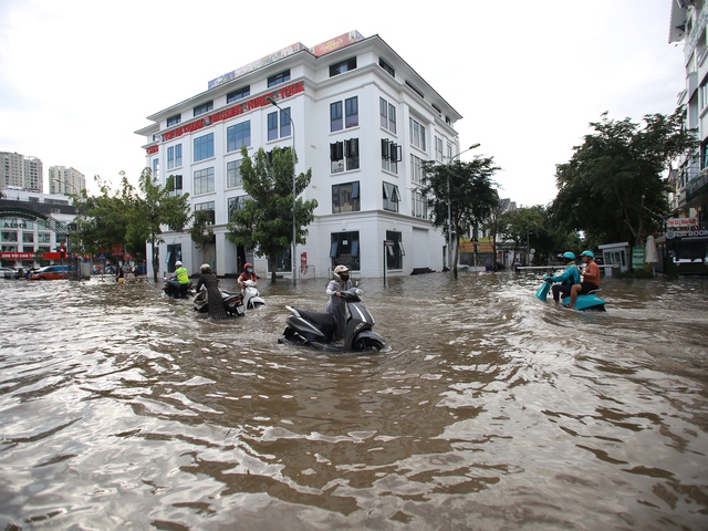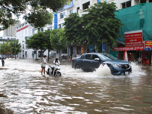 Chiều ngày 24/7, mặc dù ở Hà Nội đã tạnh mưa, có nắng nhưng nhiều tuyến đường vẫn bị ngập sâu sau cơn mưa kéo dài.