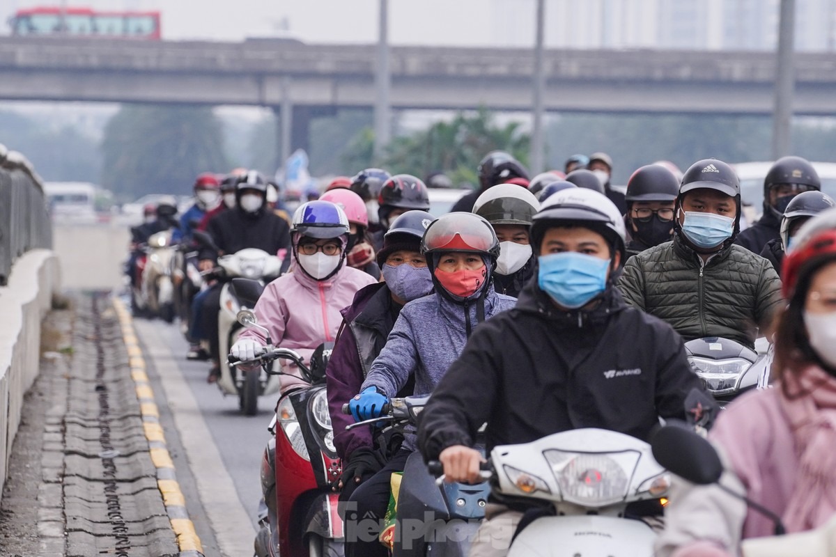 Xe máy nối đuôi nhau tại cầu vượt Trung Hoà lúc 8h30.