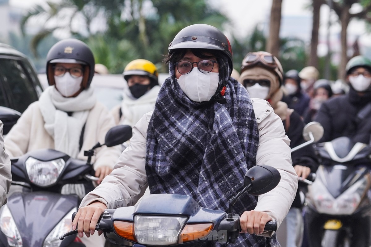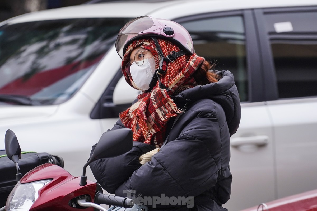 Nhiều người ra đường với những bộ trang phục kín mít để đối phó với không khí lạnh.