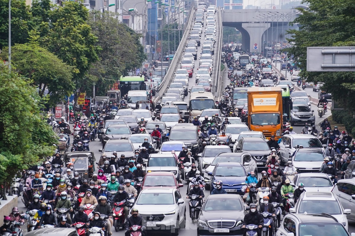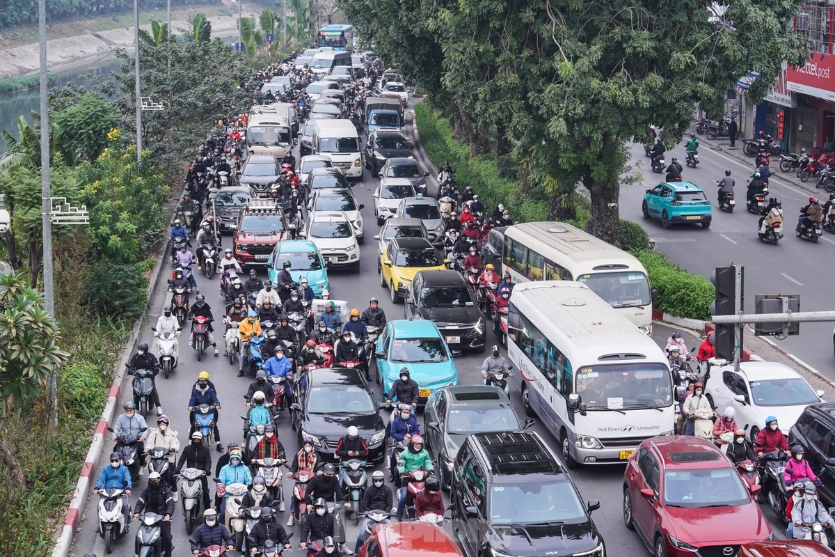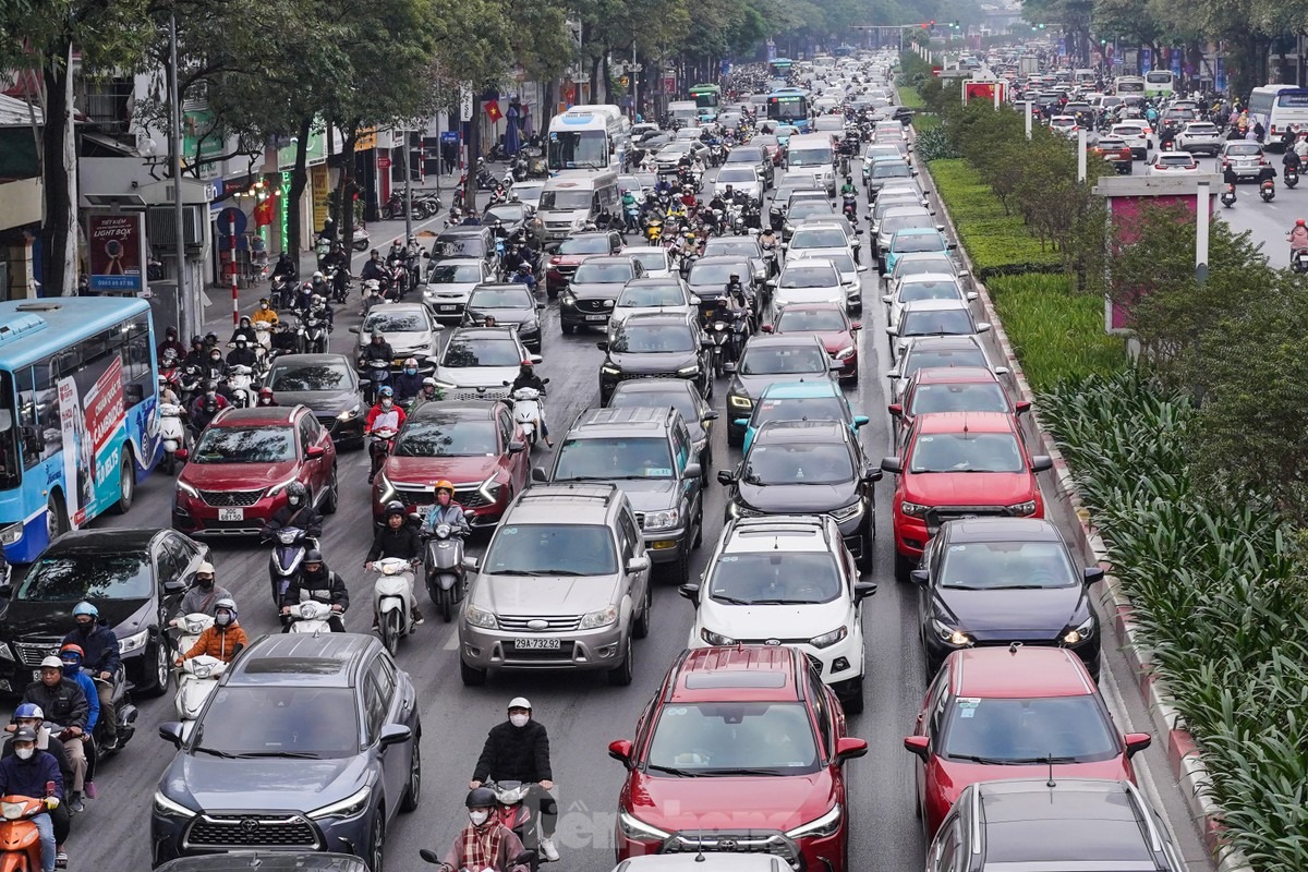 Hàng trăm ô tô, xe máy ken đặc trên đường Láng lúc hơn 8 giờ.