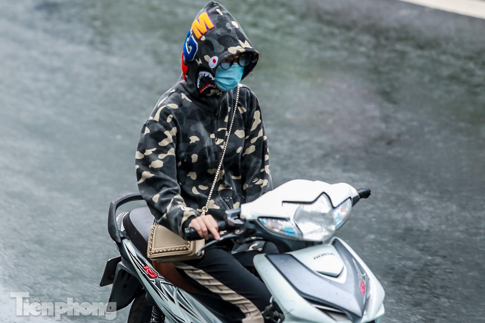 Không khí lạnh tăng cường, nền nhiệt Hà Nội giảm xuống thấp, chỉ khoảng từ 18 - 20 độ C khiến nhiều người dân Thủ đô co ro trong cái lạnh đầu mùa.
