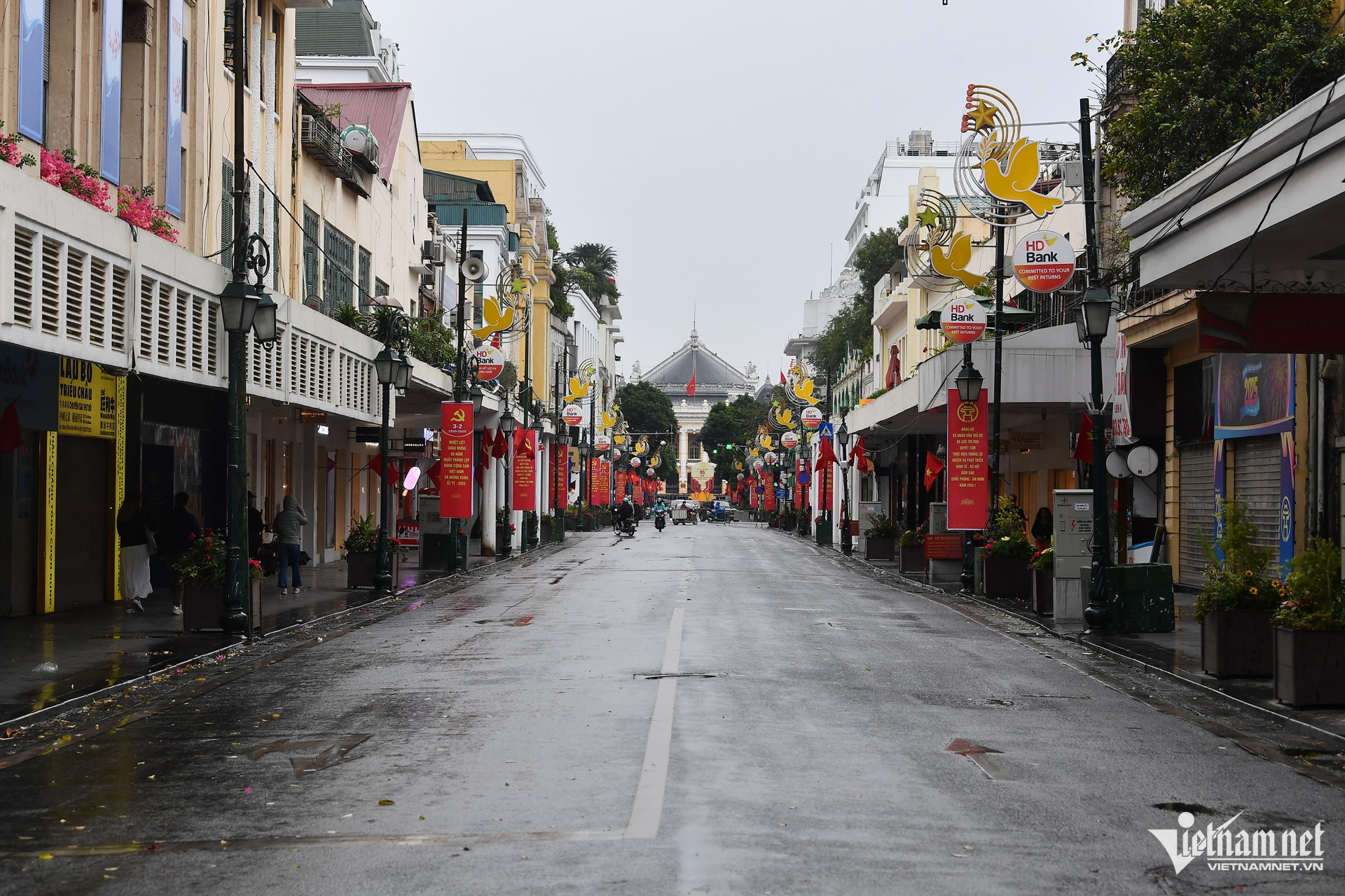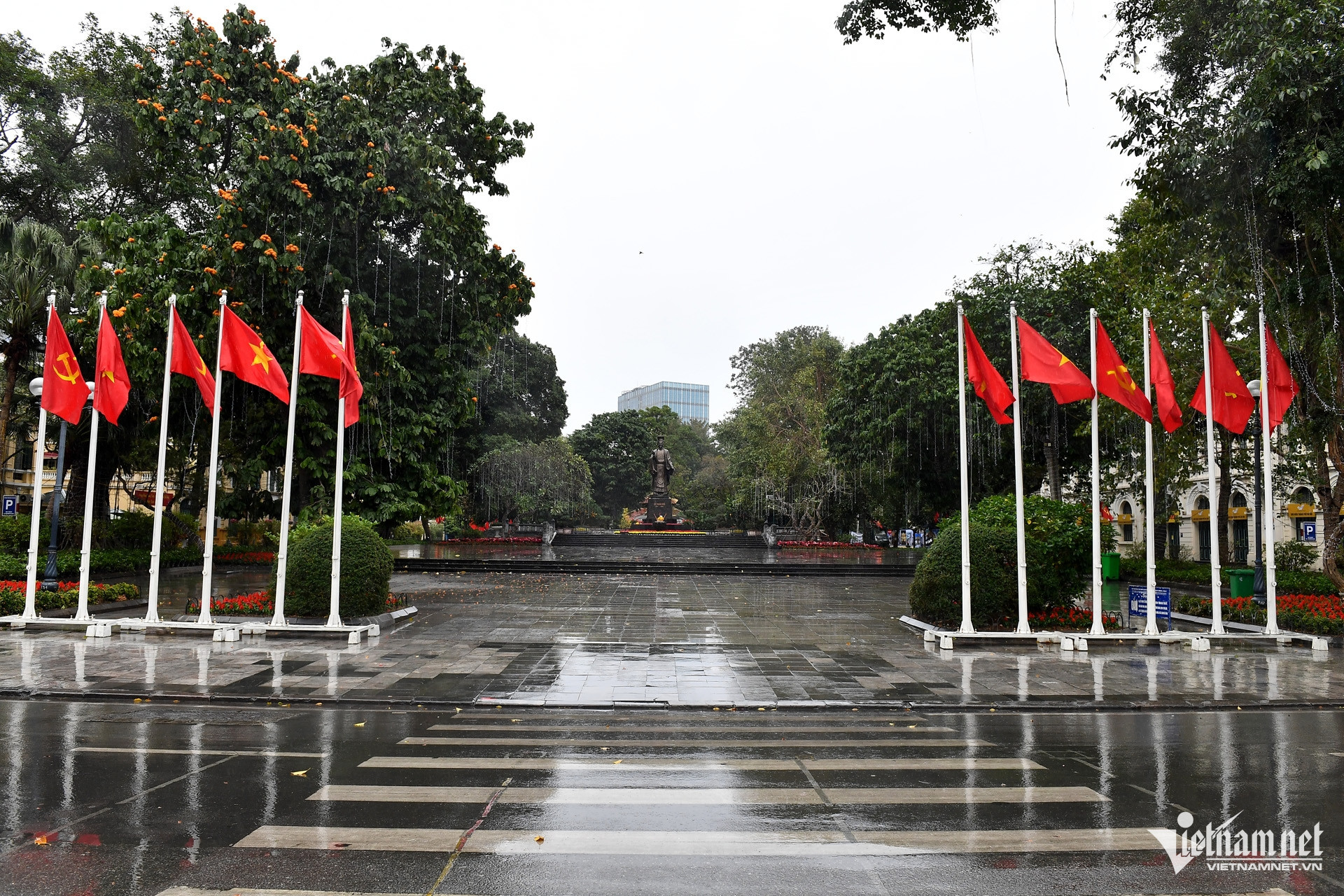 Không khí lạnh tăng cường kèm theo mưa và gió mạnh ùa về miền Bắc khiến trung tâm Hà Nội vắng vẻ, phố đi bộ hồ Gươm thưa thớt người dân và du khách, sáng 26/1.
