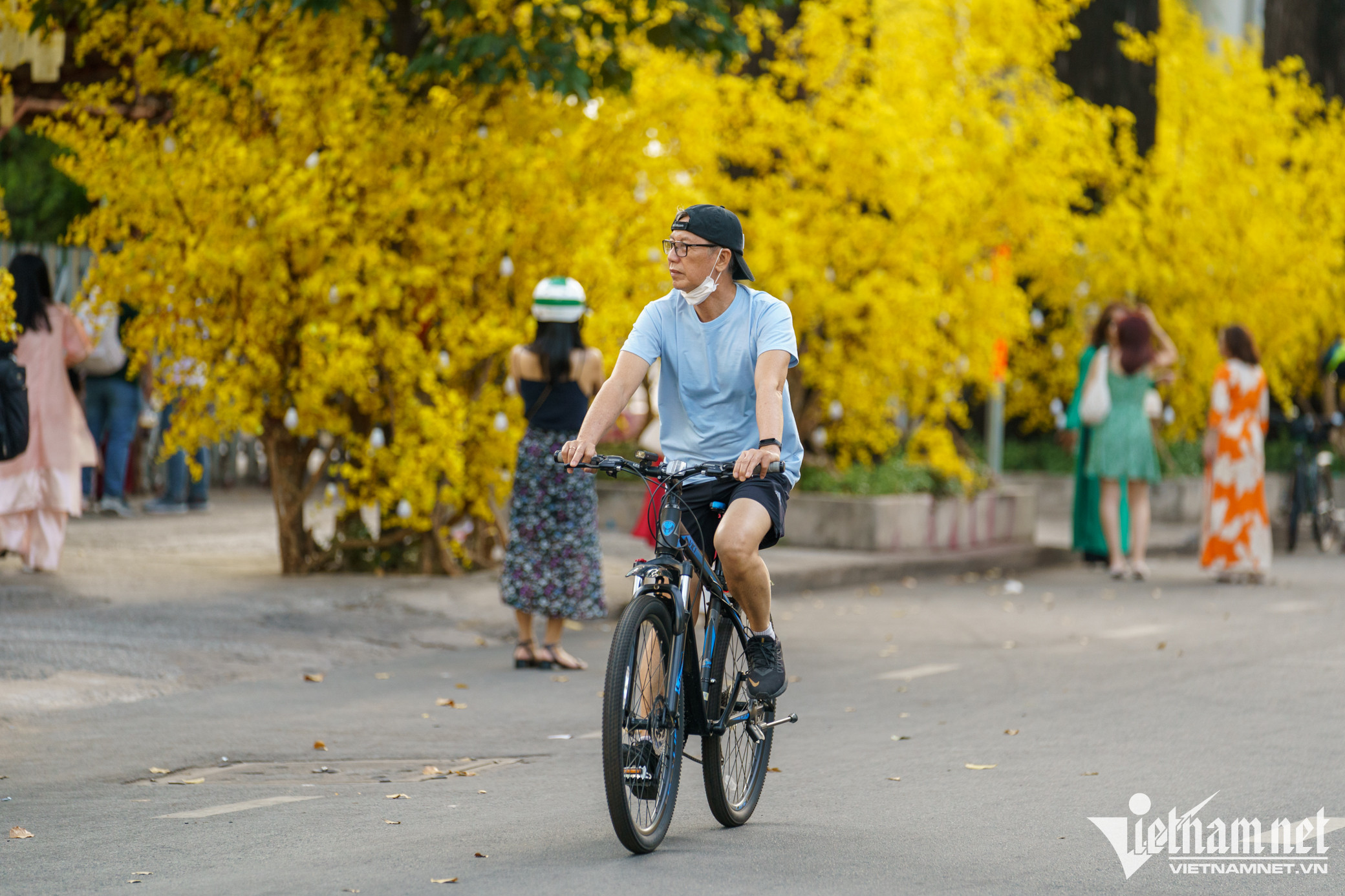Sáng 30 Tết, các con đường ở TP.HCM vắng bóng người và phương tiện, nhiều người dân xuống đường dạo chơi, du xuân sớm trong tiết trời nắng đẹp, mát mẻ.
