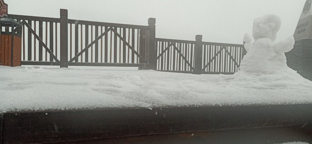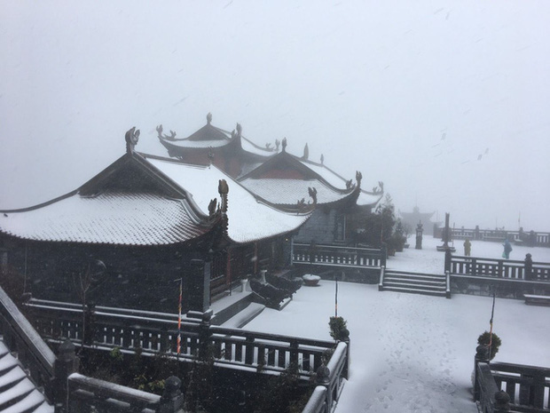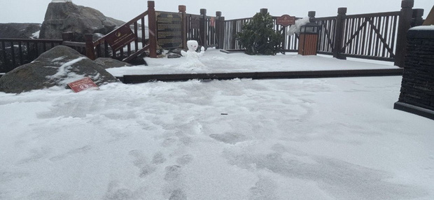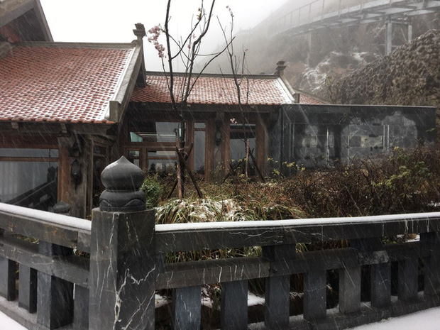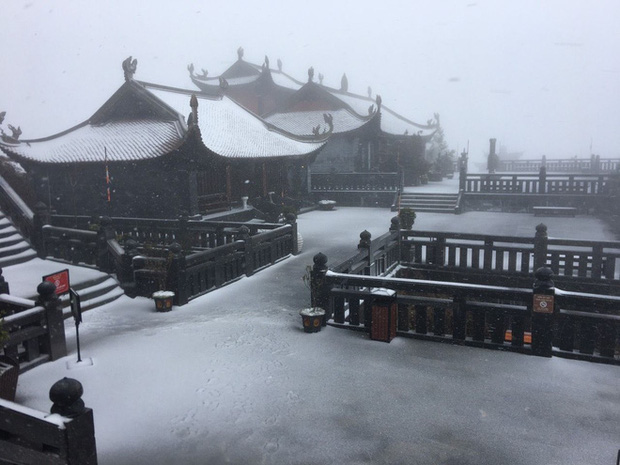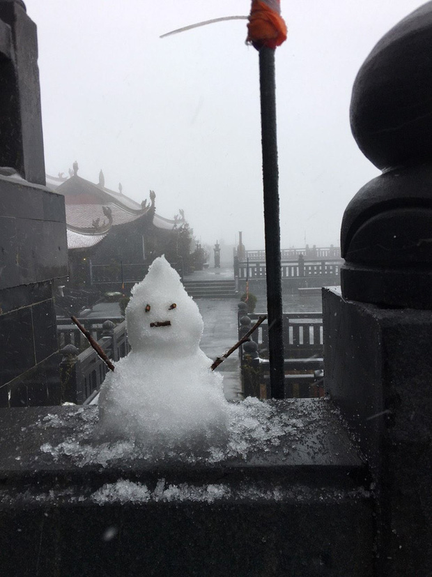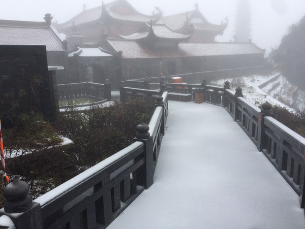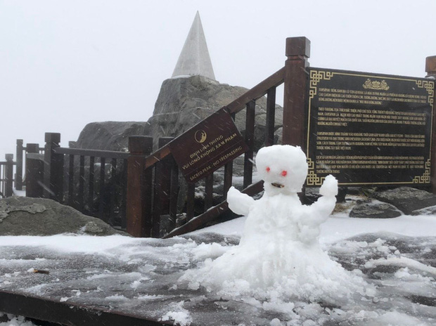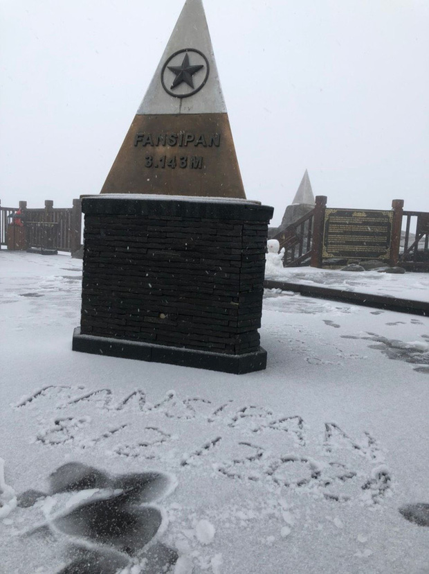 Sáng 27 Tết, trên đỉnh Fansipan bất ngờ xuất hiện tuyết rơi trắng xoá. Chỉ sau 2 tiếng, tuyết đã rơi dày 2-3cm.