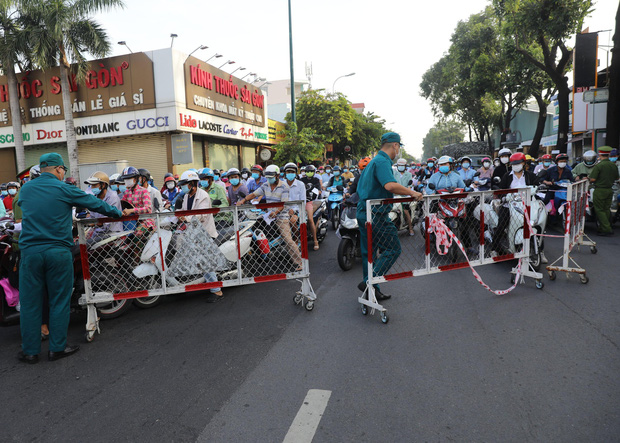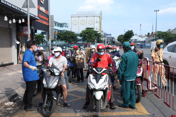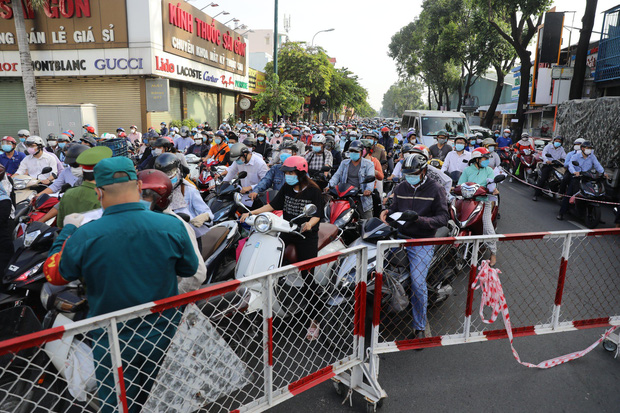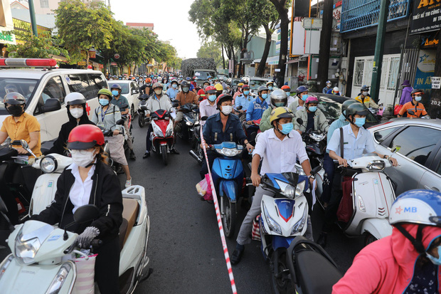 Số lượng người từ nhiều nơi đổ về trung tâm TP.HCM làm việc ngày đầu tuần khiến một số chốt kiểm soát thực hiện Chỉ thị 16 để phòng chống dịch COVID-19 ùn tắc kinh hoàng vào giờ cao điểm.