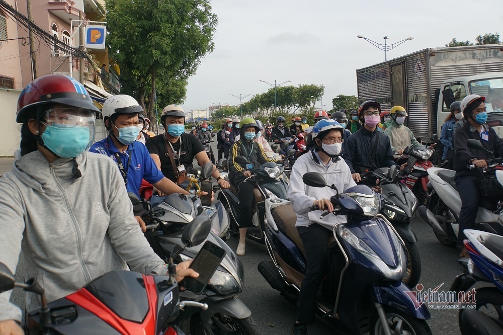 Theo ghi nhận, đường phố TP.HCM xảy ra tình trạng đông đúc dù vẫn đang trong thời gian thực hiện Chỉ thị 16 tăng cường để phòng chống dịch Covid-19.