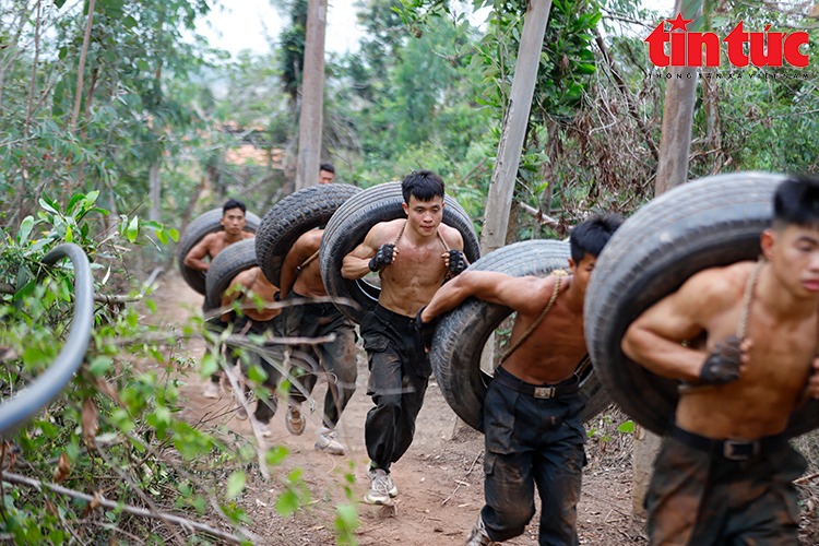 Không chỉ tập trung vào các kỹ chiến thuật đặc nhiệm, huấn luyện bơi lặn hay kỹ năng đối phó trong môi trường khắc nghiệt, các bài rèn thể lực cũng được duy trì thường xuyên. Hình ảnh những chiến sĩ vừa vác súng leo dốc, vừa kéo lốp xe nặng, vác cây gỗ vượt địa hình trở nên quen thuộc trong mỗi buổi tập. Tất cả đều nhằm xây dựng một thể lực bền bỉ, sức chịu đựng vượt giới hạn và ý chí không khuất phục.