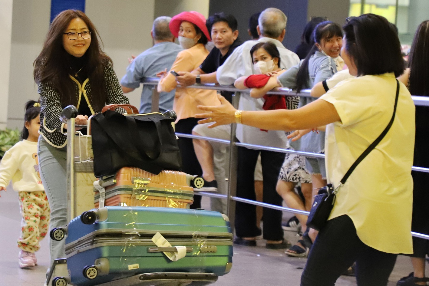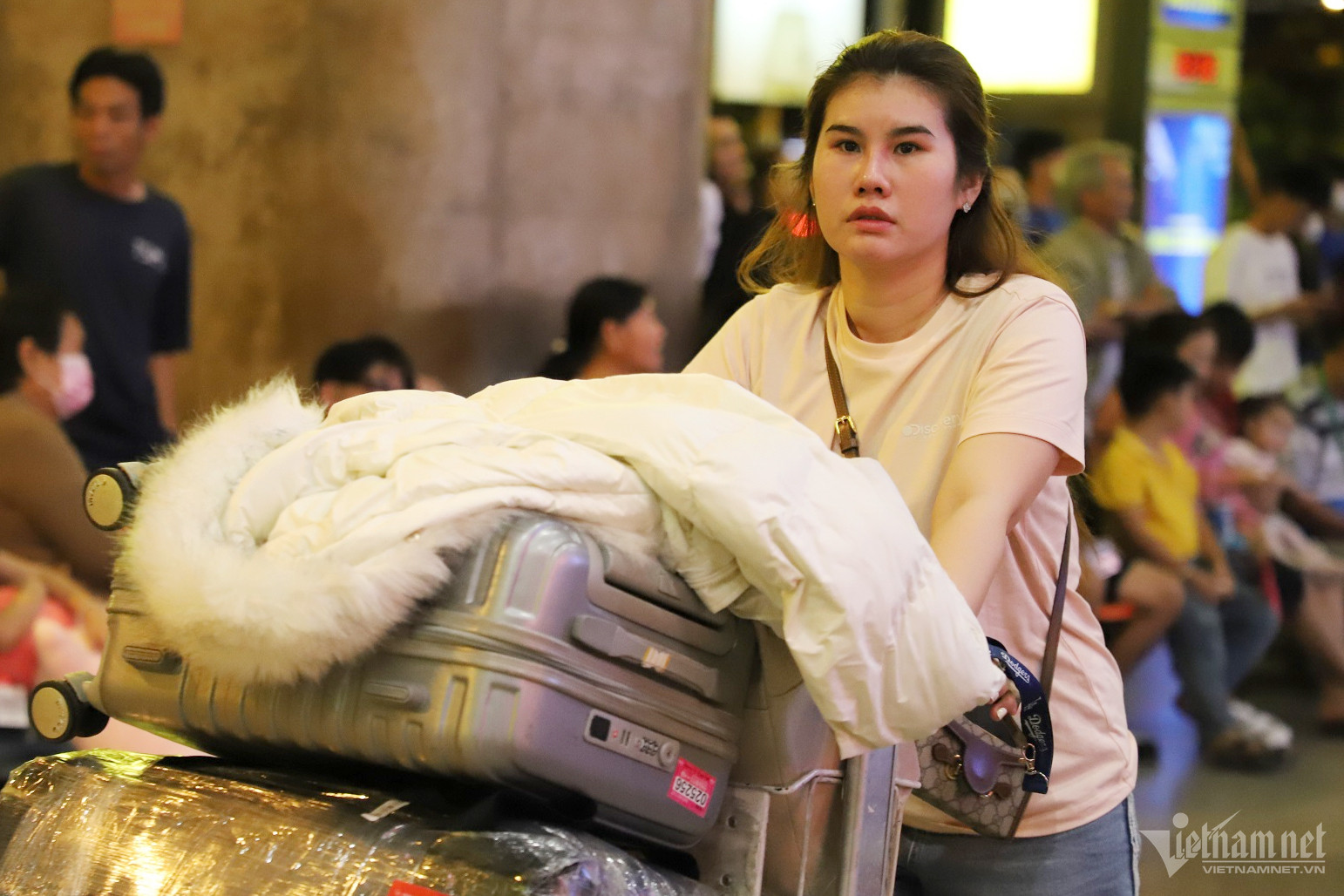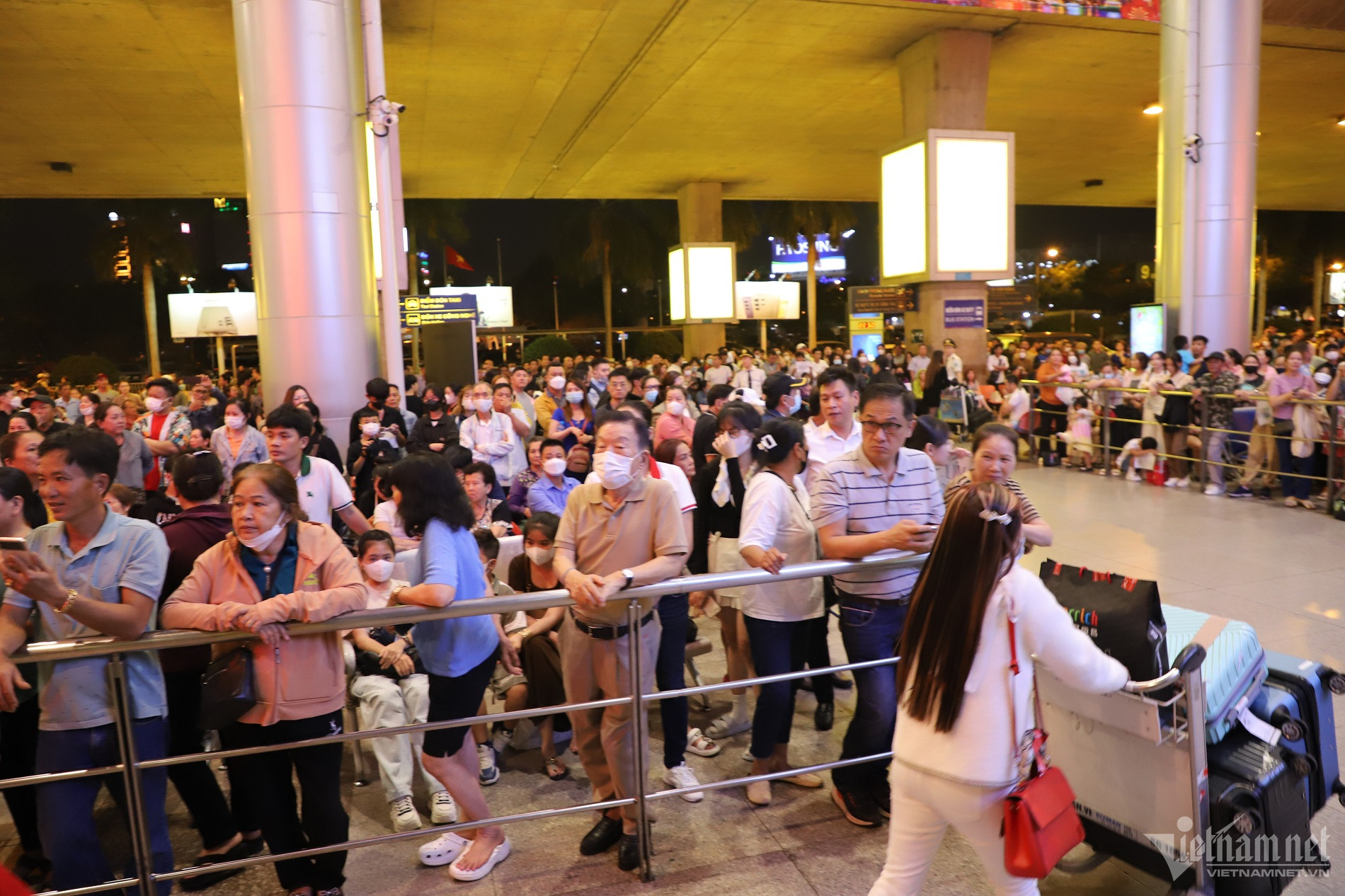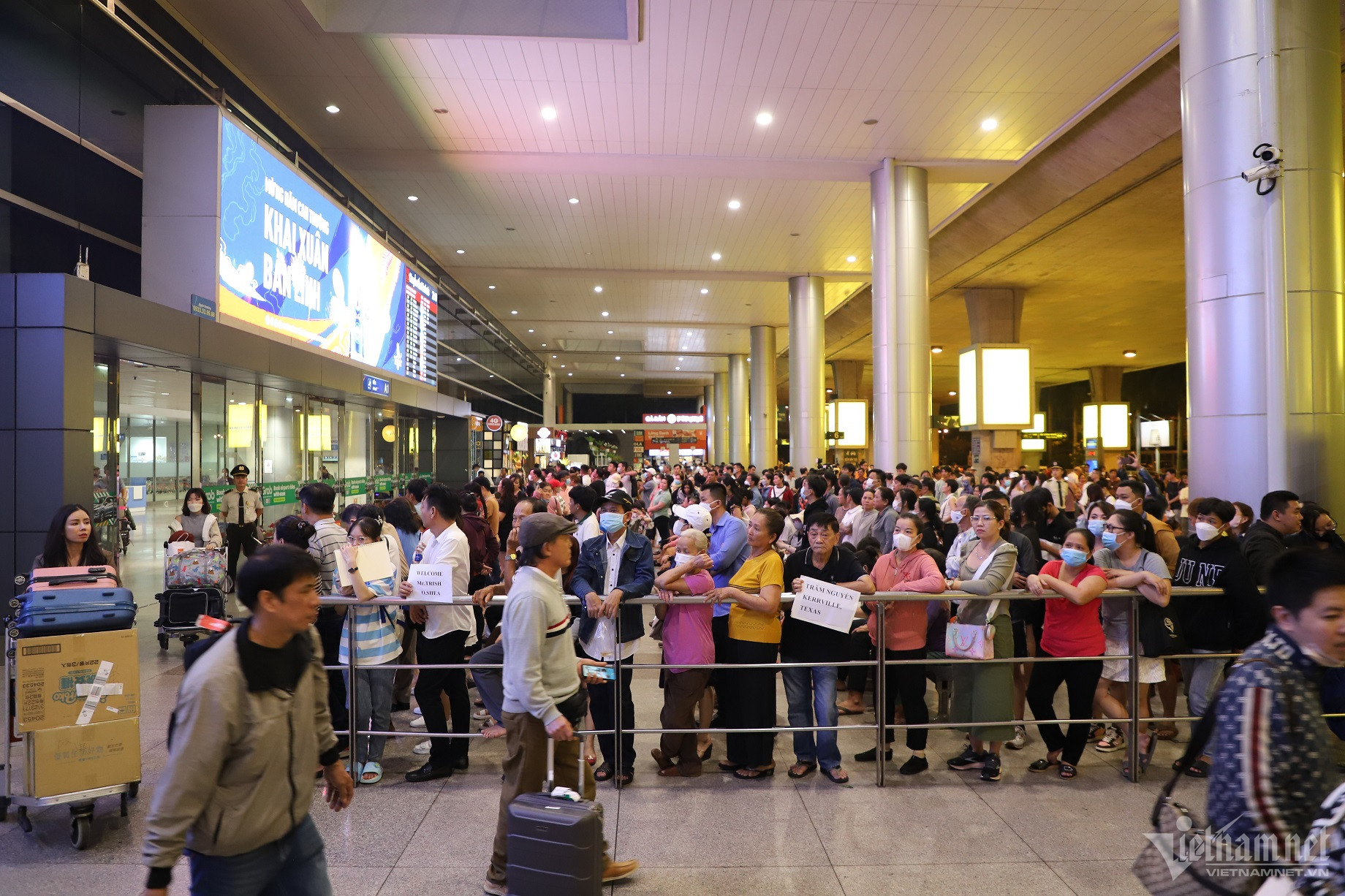Khuya 29 (ngày 19 tháng Chạp) ga quốc tế sân bay Tân Sơn Nhất (TP.HCM) đông nghẹt người đến đón thân nhân đi làm việc, định cư ở nước ngoài về Việt Nam đón Tết Nguyên đán 2024.