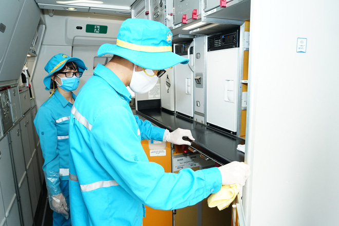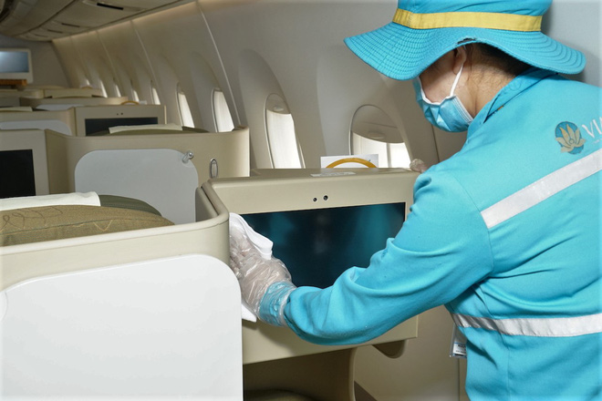 Bên cạnh các chuyến bay quốc tế được y tế phun khử trùng, các chuyến bay nội địa cũng được Vietnam Airlines chủ động vệ sinh bằng dung dịch khử trùng chuyên dụng được các nhà sản xuất máy bay Airbus, Boeing chấp thuận.