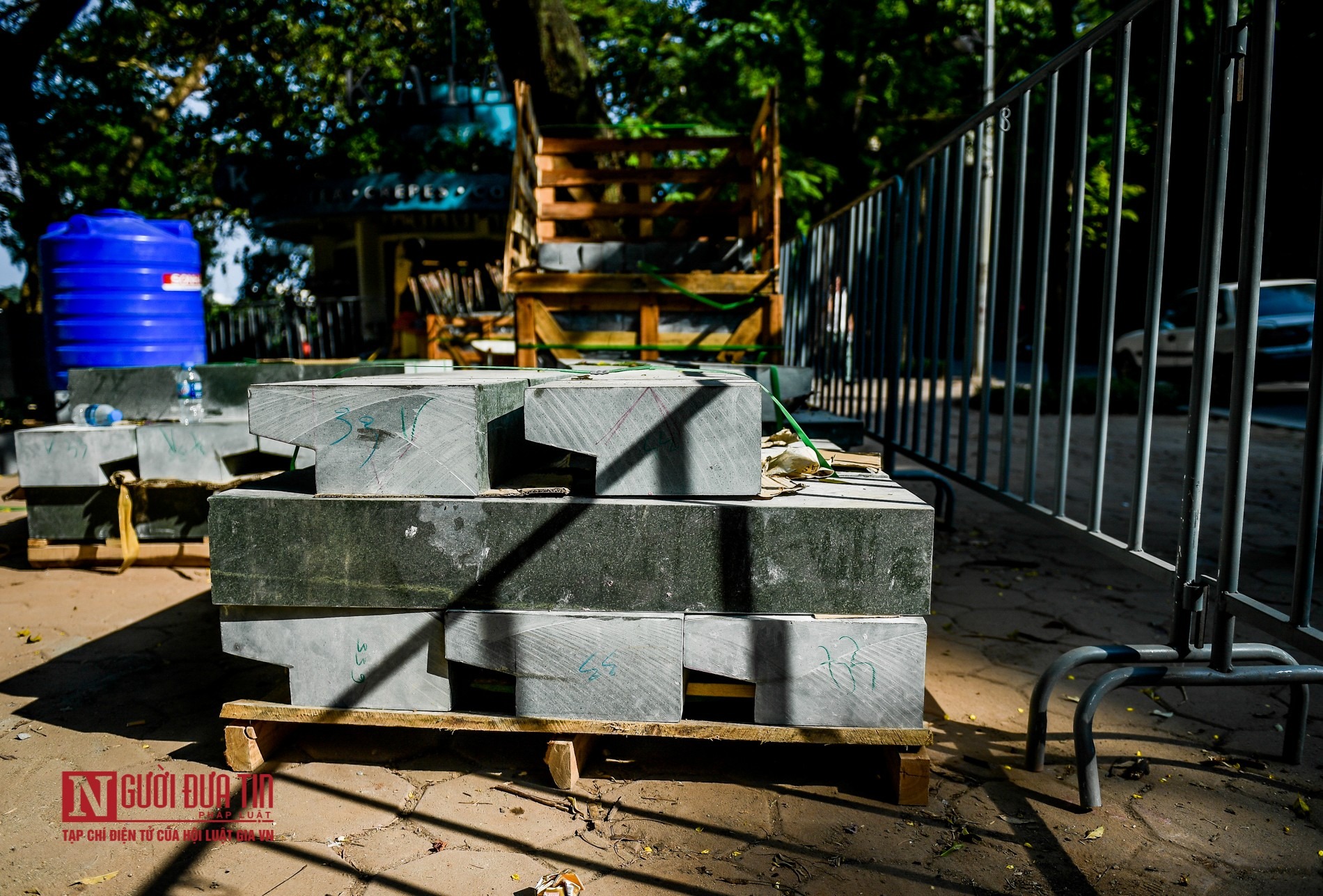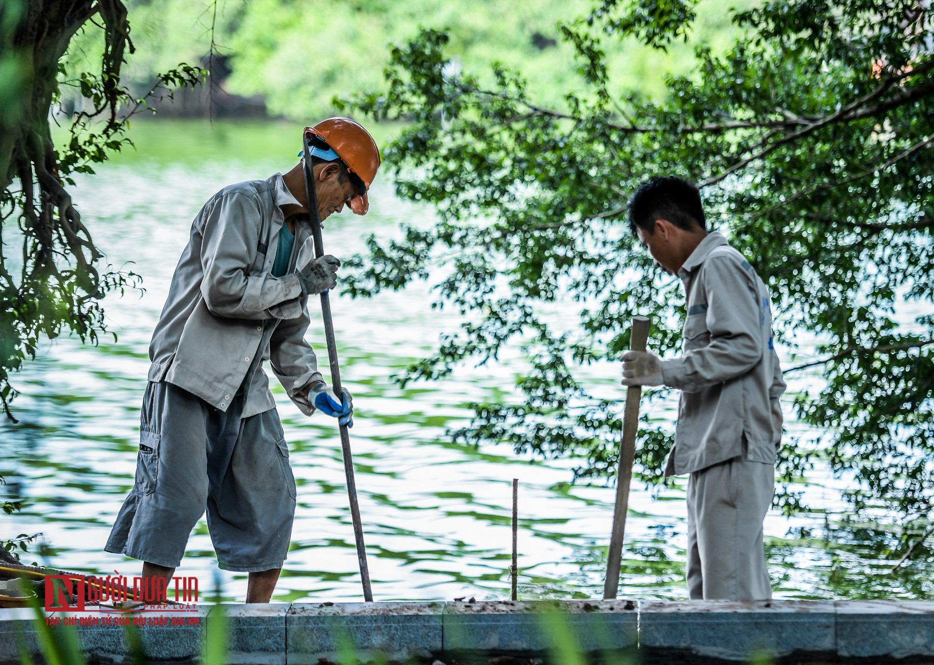 Từ ngày 31/5, sau khi thử nghiệm kè 40m bờ Hồ Gươm bằng khối bê tông đúc sẵn, toàn bộ đường dạo, vỉa hè quanh hồ được công nhân bắt đầu bỏ đi để thay thế bằng đá tự nhiên có nguồn gốc từ Bình Định và Phú Yên.