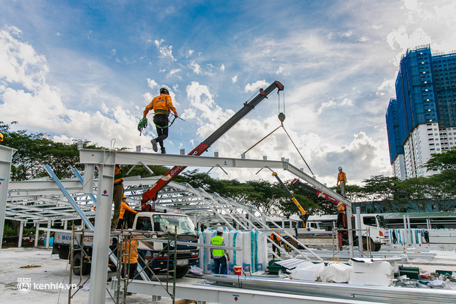 | Cận cảnh bên trong đại công trường xây dựng thần tốc 2 bệnh viện dã chiến Covid-19 ở TP.HCM |