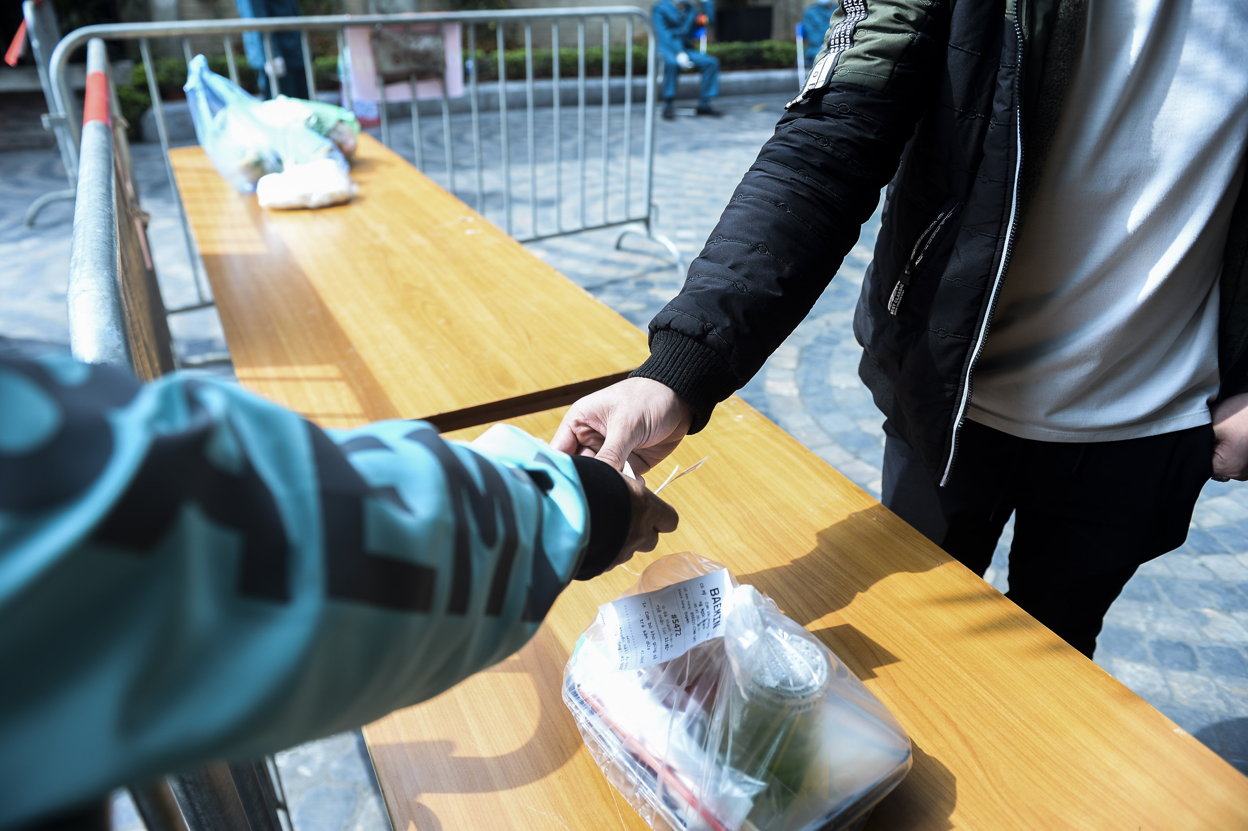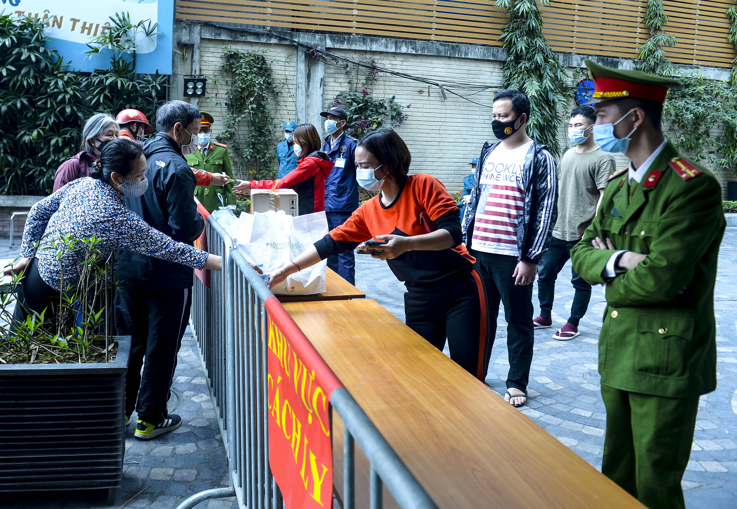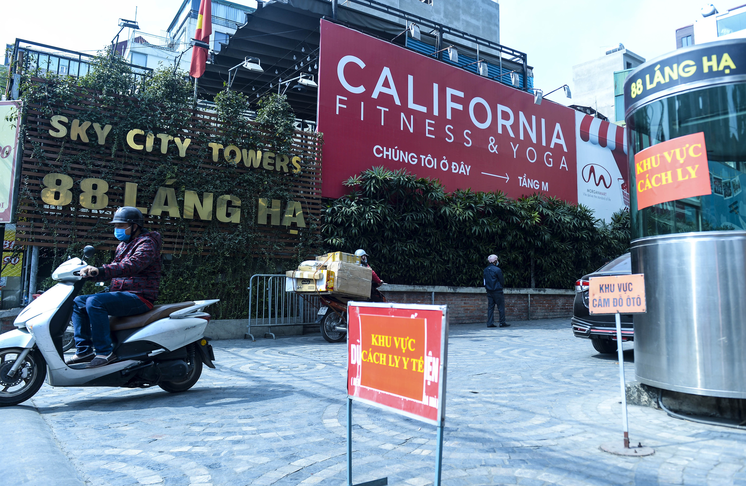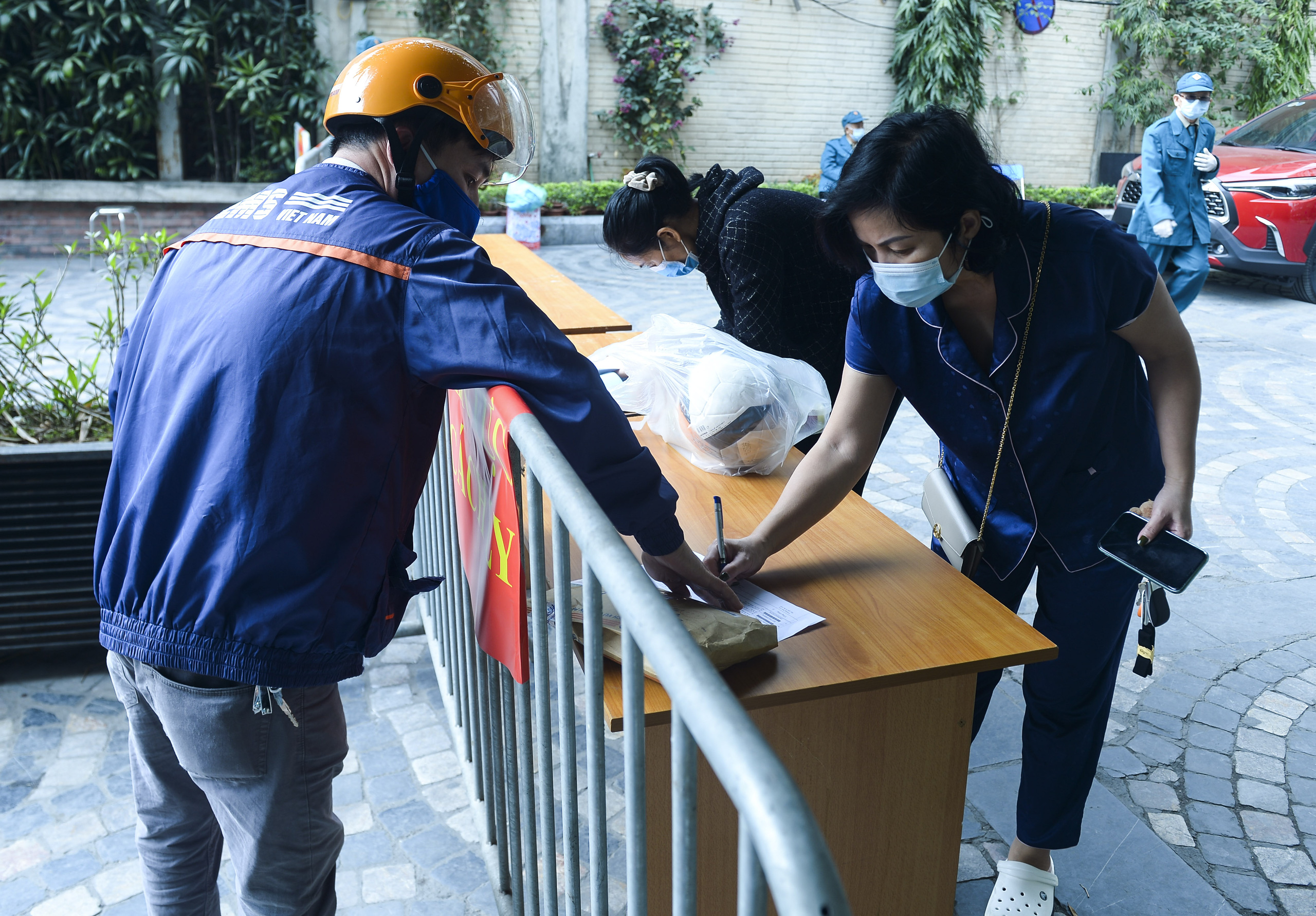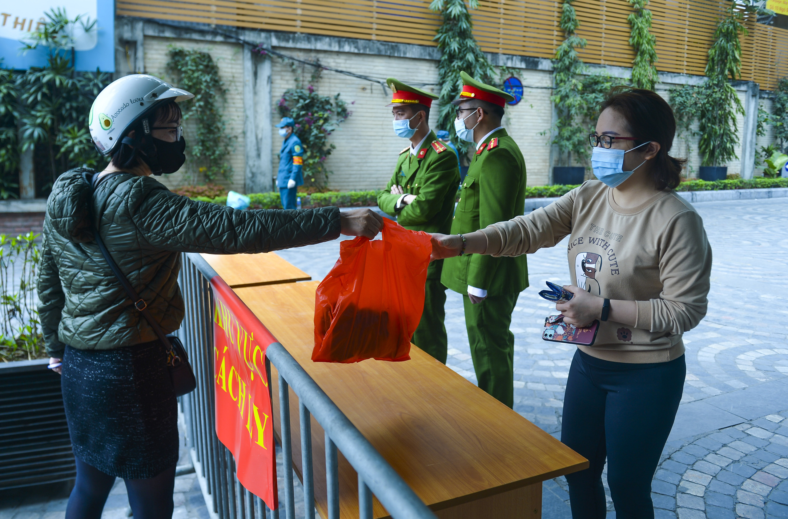 Trưa 5/2, tại cổng chính khu chung cư 88 Láng Hạ, hàng trăm lượt shipper vận chuyển hàng đến đây để giao cho người đặt mua đang sinh sống bên trong khu cách ly.