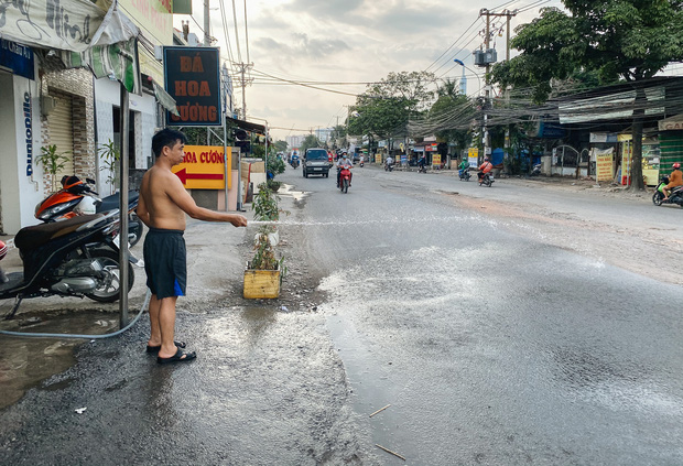 Theo ông Diễn, hàng ngày trời nắng ông phải tưới nước ra mặt đường trước nhà cho đỡ bụi. Nhà ông bán thức ăn nên phải liên tục lau chùi vì bụi bám đầy, nếu không lau lớp bụi phủ dày hơn. Cuộc sống kinh doanh buôn bán của những hộ dân hai bên đường này luôn trong tình trạng ế ẩm vì đường xuống cấp, nham nhở nên không có khách.