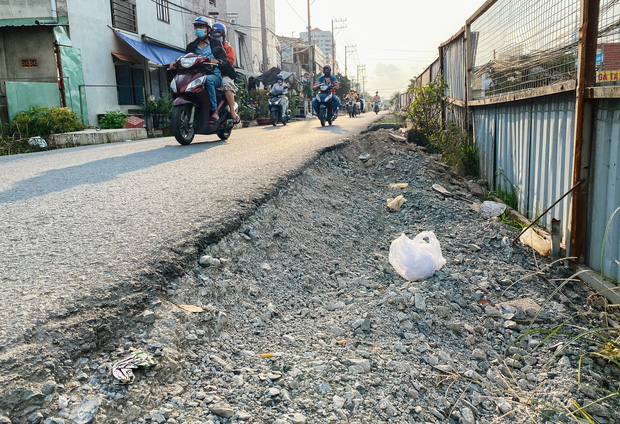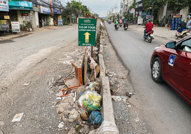 Theo người dân, tuyến đường lập rào chắn ngăn 2 bên để thi công nhưng để mãi đó không thấy công nhân làm nên biến thành nơi vứt rác của người đi đường. Tuyến đường nâng cấp đổ nhựa một bên cao, bên còn lại thấp lởm chởm đất đá gây nguy hiểm cho người đi đường, đặc biệt là xe máy.