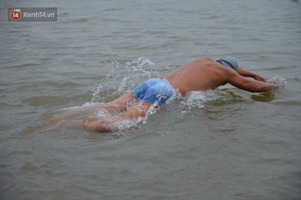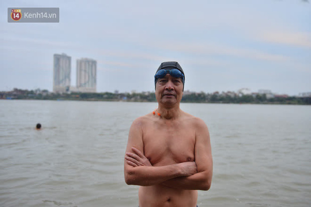 "Chúng tôi tắm, bơi lội ở đây đã thành thói quen để rèn luyện sức khoẻ. Những ngày này, chúng tôi khởi động chút rồi xuống tắm vẫn cảm thấy bình thường vì đã quen rồi. Nước dưới sông Hồng rất ấm nên không bị lạnh, chỉ lúc lên bờ và chuẩn bị xuống tắm thì lạnh thôi. Hàng ngày, mọi người thường tắm vào sáng sớm và chiều tối khi đi làm về. Những ai chưa tắm quen thì không chịu được", ông Hùng tâm sự.