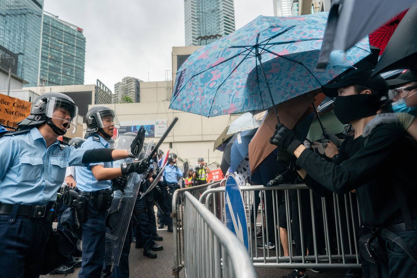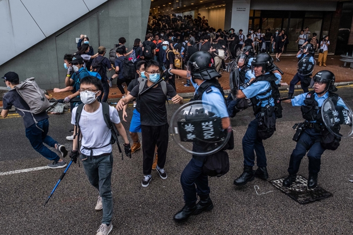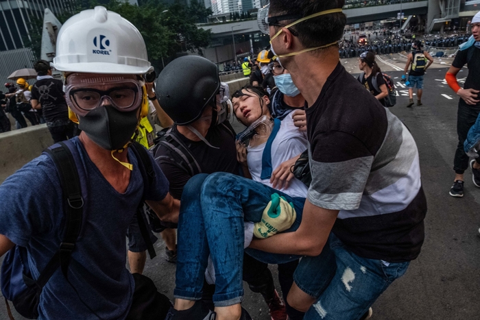 Bạo lực xảy ra khi người biểu tình đụng độ cảnh sát vào chiều 12/6. Đoàn người biểu tình sử dụng ô làm lá chắn để tìm cách tiến vào tòa nhà Hội đồng Lập pháp Hong Kong, ném đồ vật vào cảnh sát chống bạo động, trong khi lực lượng chức năng bắn đạn hơi cay và dùng dùi cui chống lại.