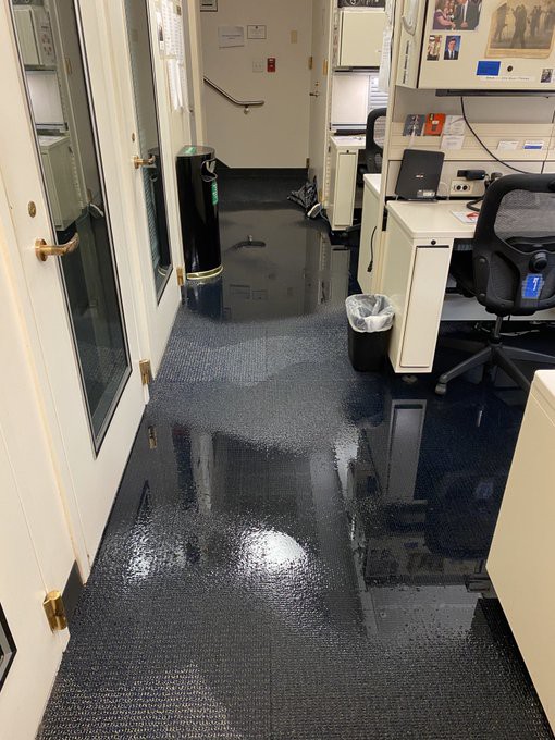 Trưởng phóng viên Nhà Trắng John Roberts của Fox News đã đang tải trên twitter ngày 10/9 những bức ảnh sàn trải thảm dưới tầng hầm Nhà Trắng bị ngâm trong nước.