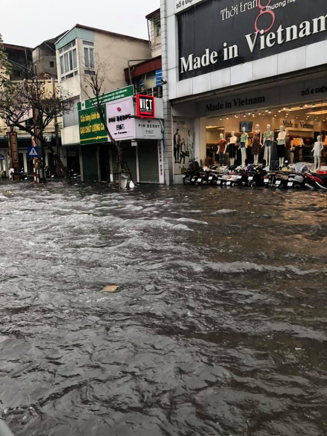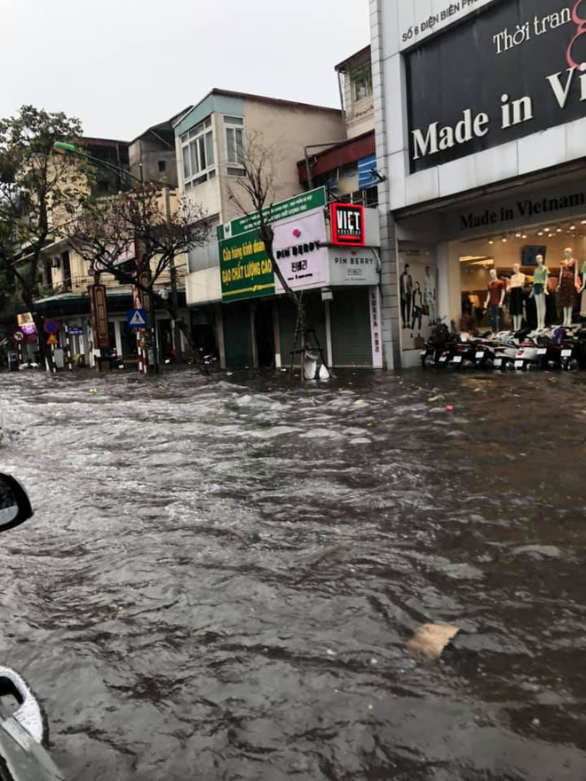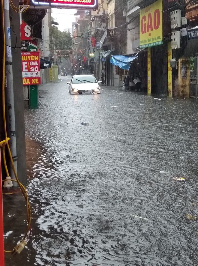 Ngay sau đó, sấm chớp kèm theo trận mưa lớn đã đổ xuống khu vực nội thành Hà Nội. Sau gần 30 phút thì nhiều tuyến phố Hà Nội đã rơi vào tình trạng ngập lụt, các phương tiện di chuyển vô cùng khó khăn.