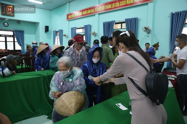 Sau đó, ông Trần Kính - Chủ tịch UBND xã Hải Thượng (huyện Hải Lăng) cho biết, những người mà Facebook Thủy Tiên nói "đeo vàng ở tay đến nhận cứu trợ" thật chất là những người họ hàng, người thân đi nhận giúp phần cho các cụ già neo đơn không đủ sức đến đứng đợi giữa trời mưa lạnh.