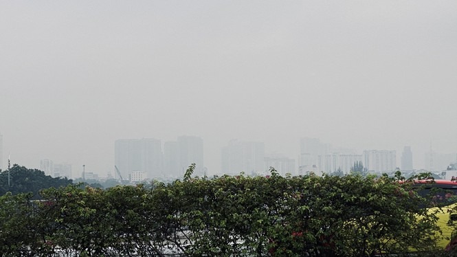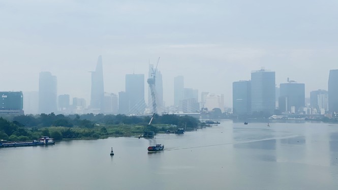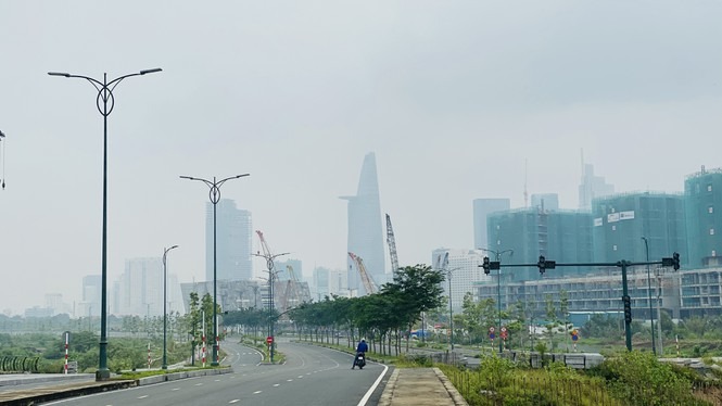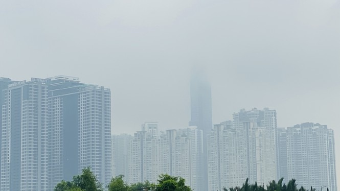 Sáng 25/9, lớp mây mù nhẹ đã che phủ nhiều toà nhà ở khu vực trung tâm TPHCM Bitexco, Landmark 81...